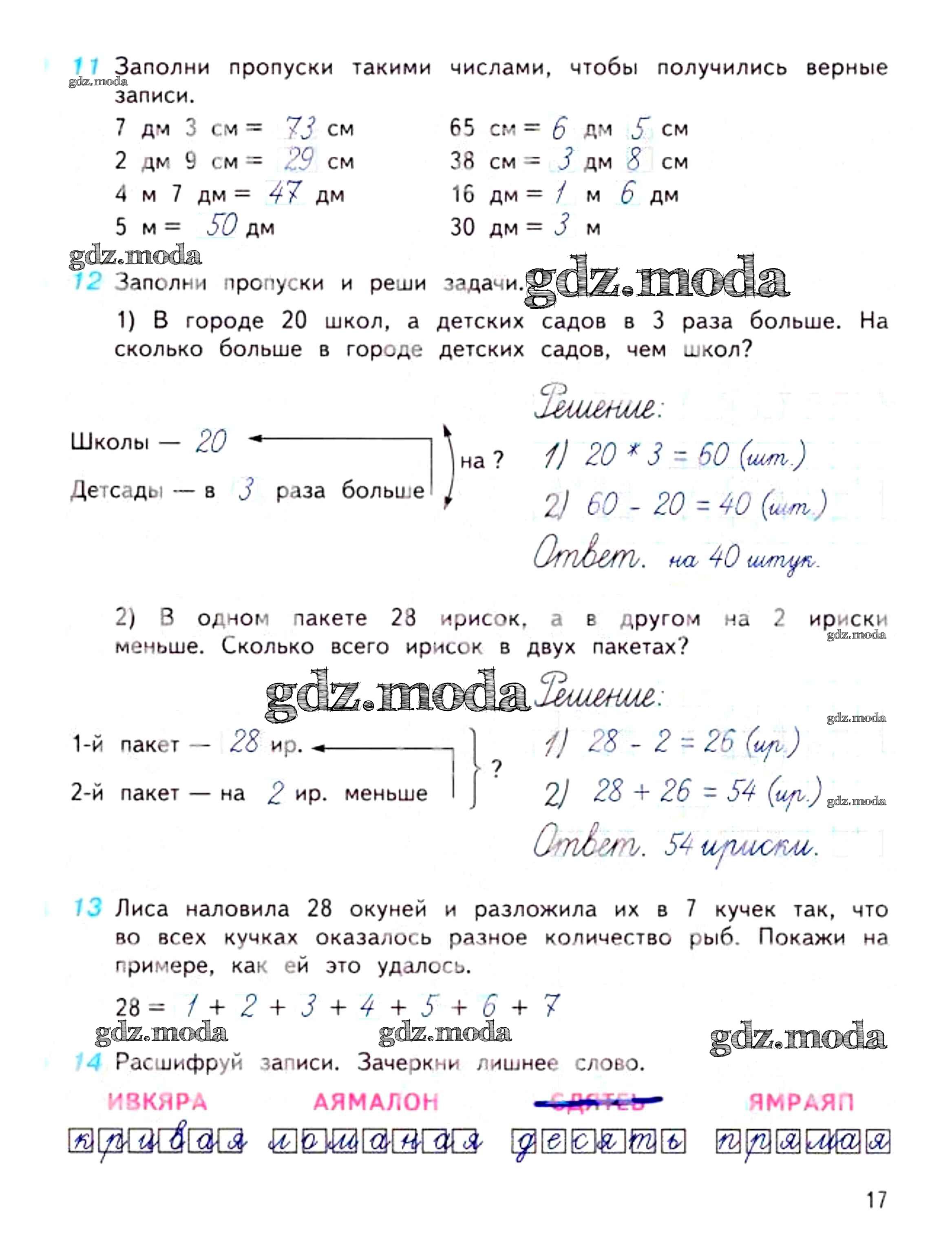ОТВЕТ на задание № 17 Рабочая тетрадь по Математике 3 класс Дорофеев Перспектива