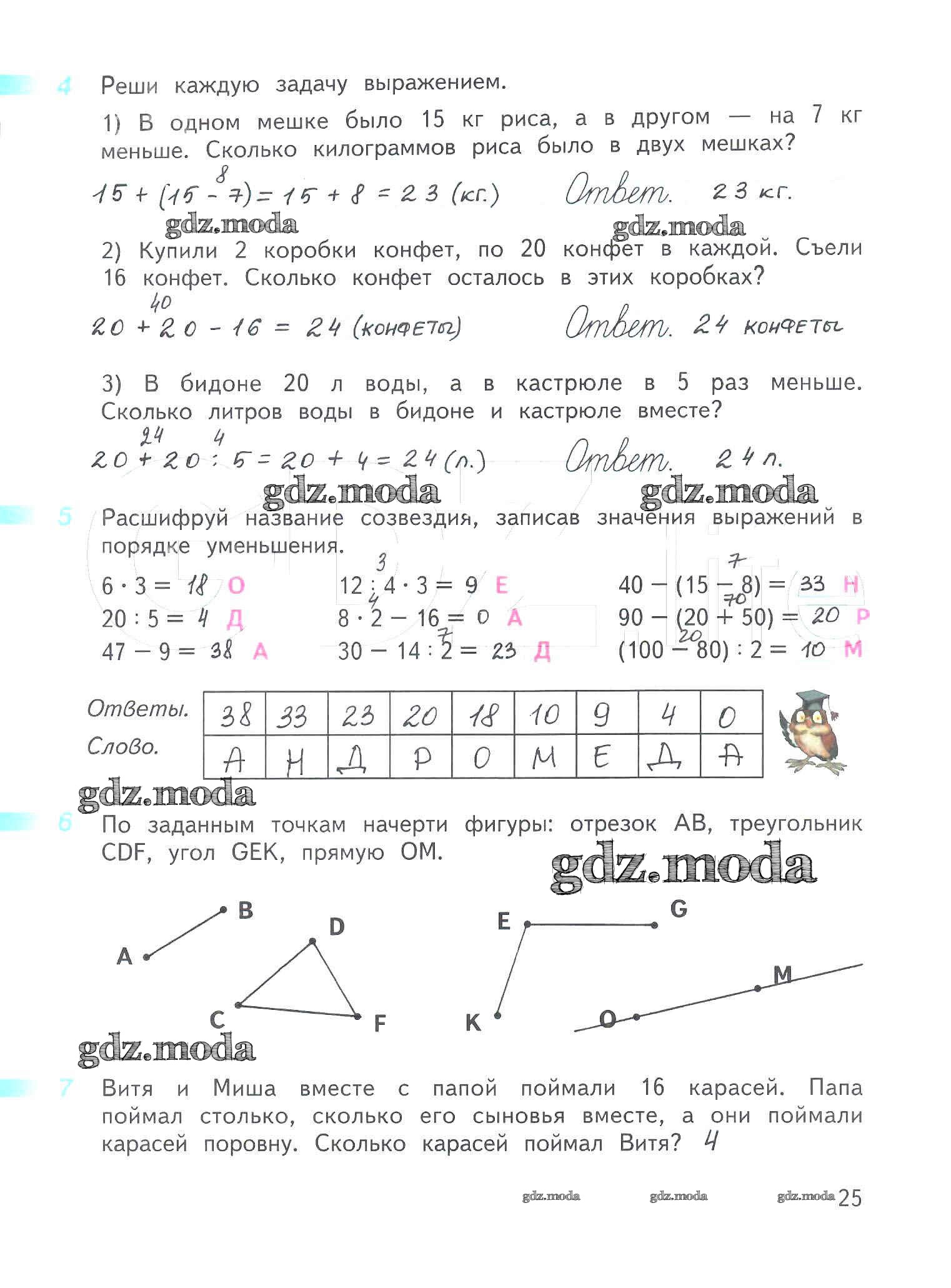 ОТВЕТ на задание № 25 Рабочая тетрадь по Математике 3 класс Дорофеев Перспектива