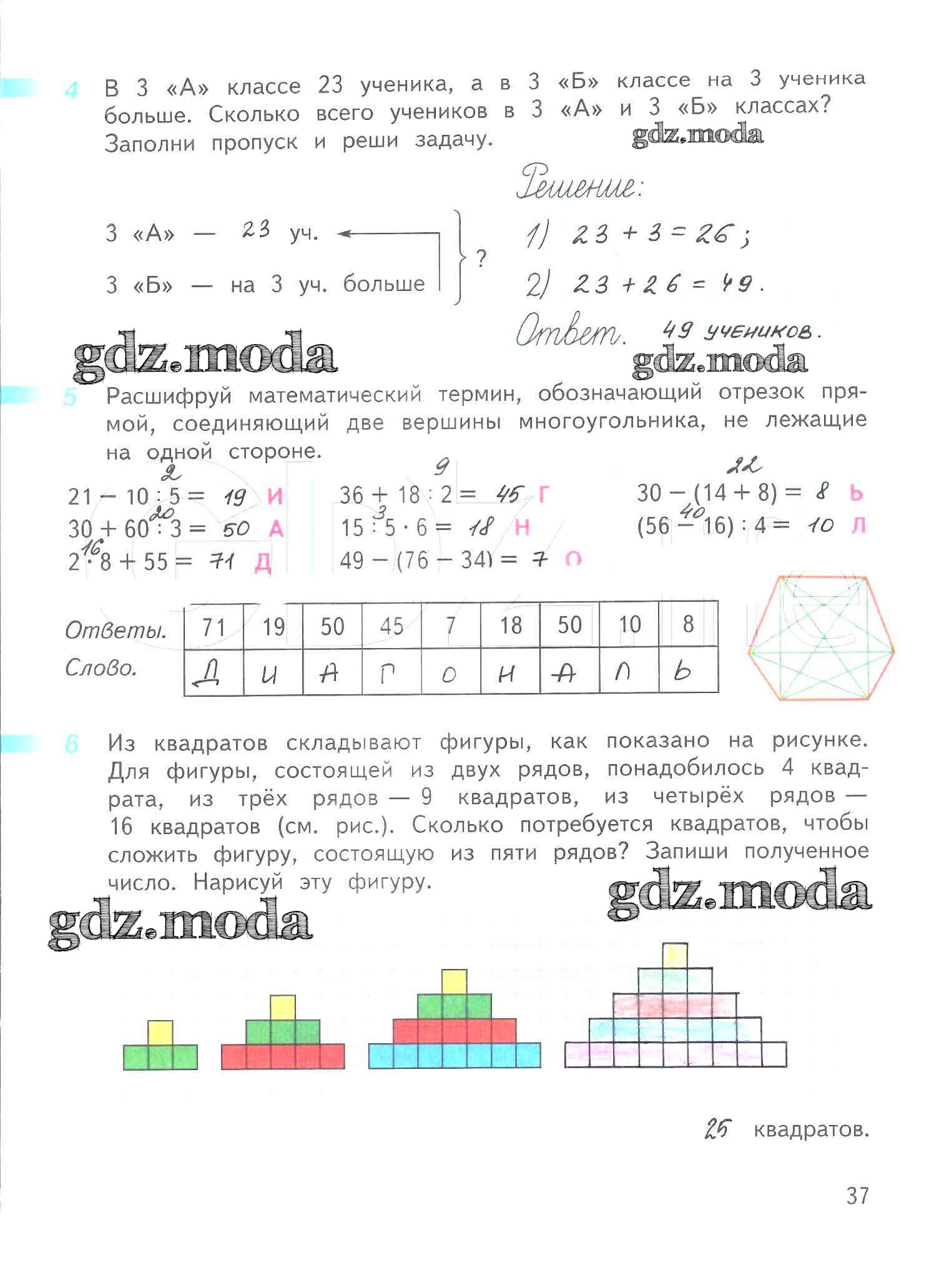 ОТВЕТ на задание № 37 Рабочая тетрадь по Математике 3 класс Дорофеев Перспектива