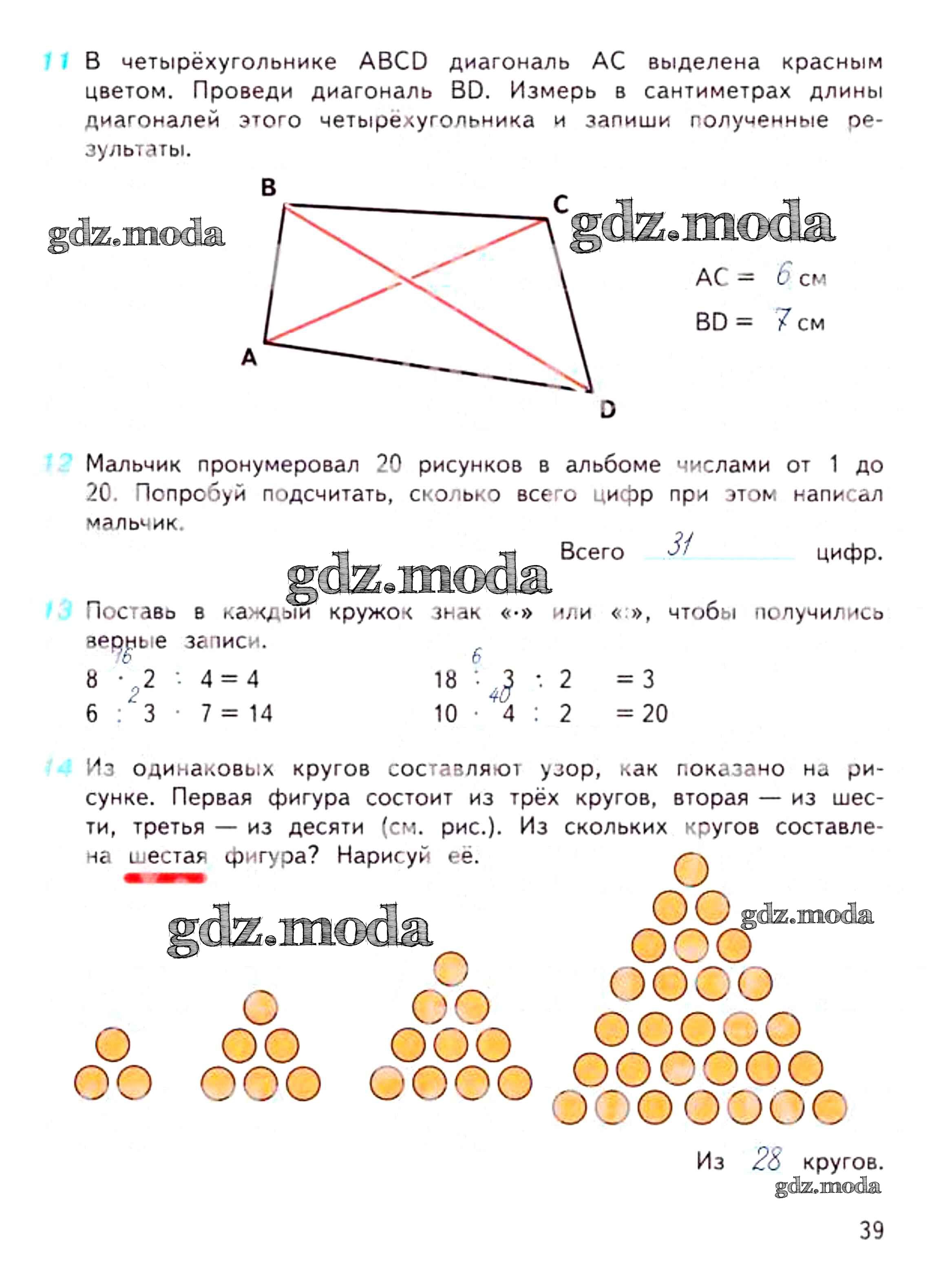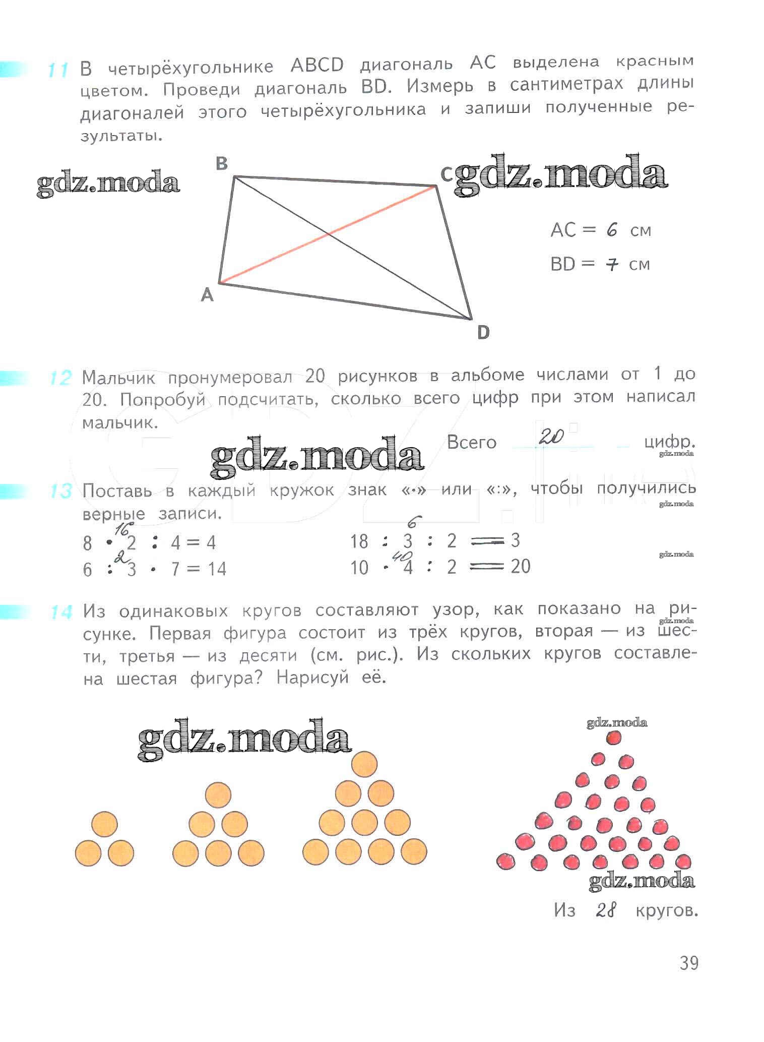 ОТВЕТ на задание № 39 Рабочая тетрадь по Математике 3 класс Дорофеев Перспектива