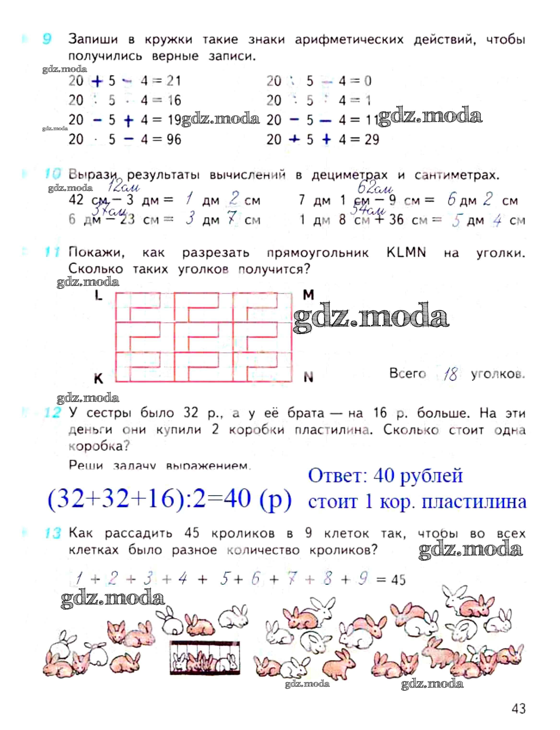 ОТВЕТ на задание № 43 Рабочая тетрадь по Математике 3 класс Дорофеев Перспектива