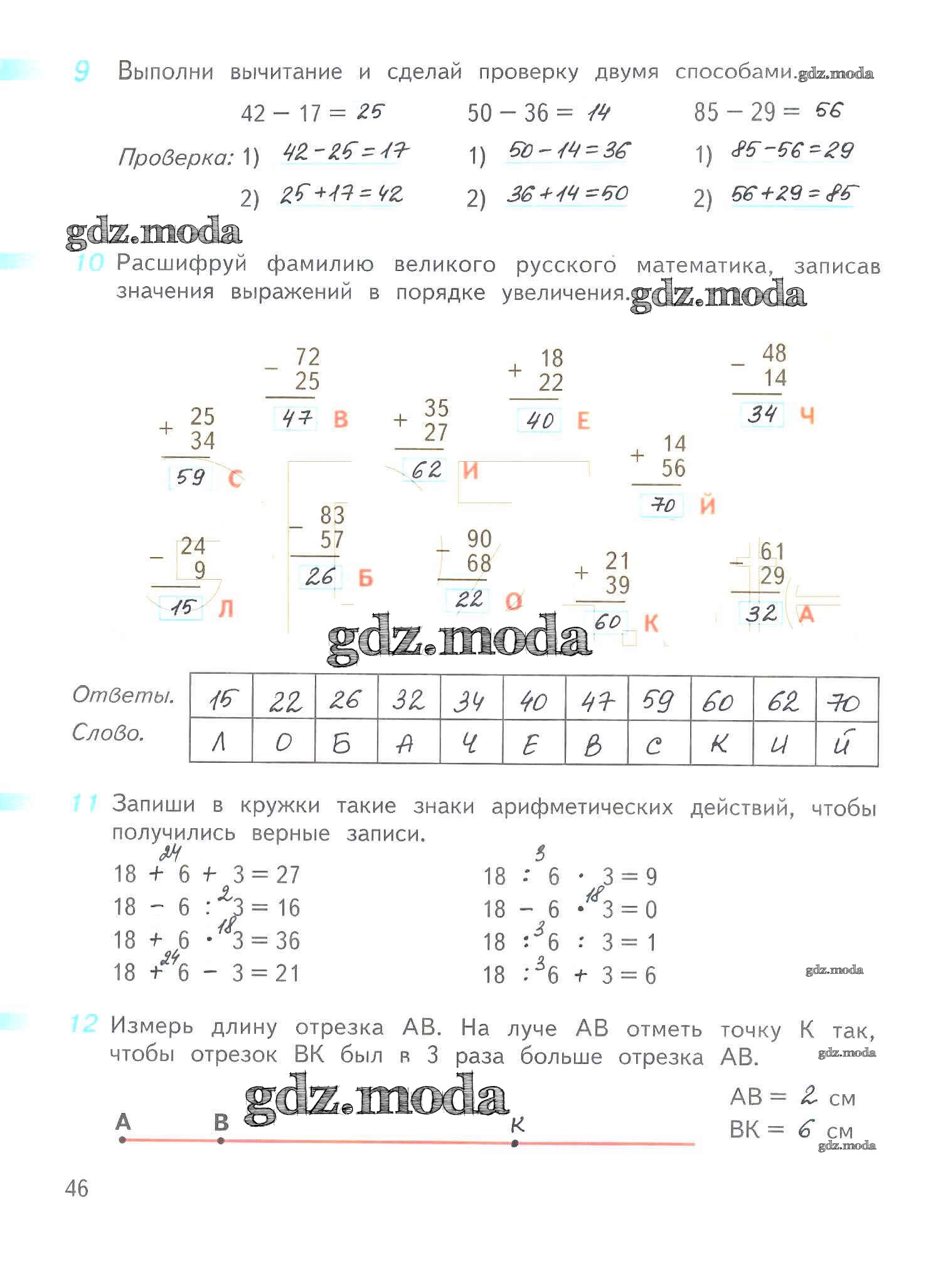 ОТВЕТ на задание № 46 Рабочая тетрадь по Математике 3 класс Дорофеев Перспектива