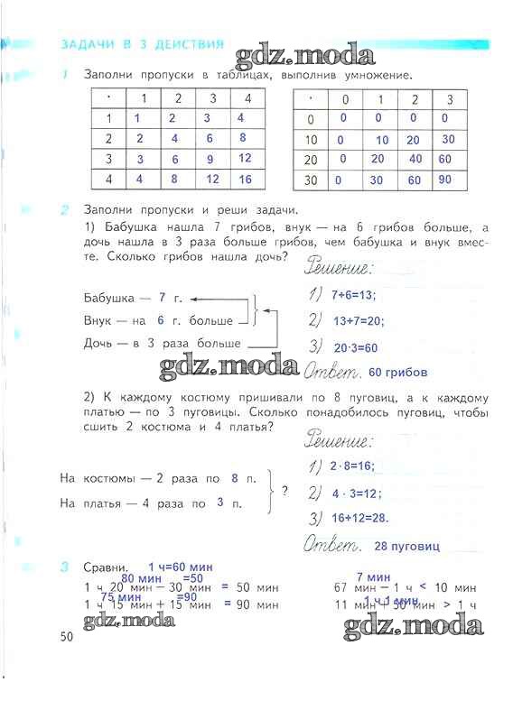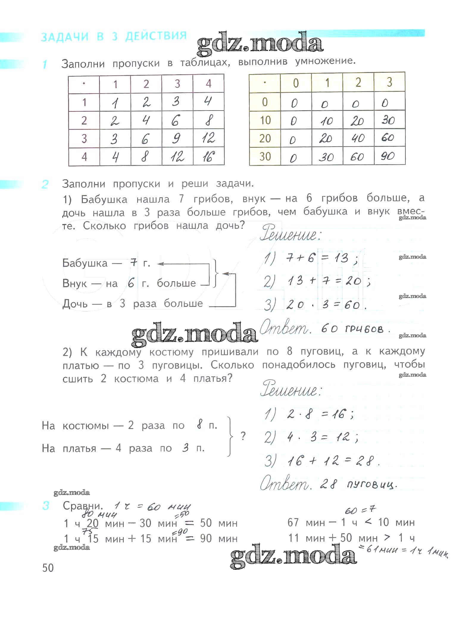 ОТВЕТ на задание № 50 Рабочая тетрадь по Математике 3 класс Дорофеев Перспектива