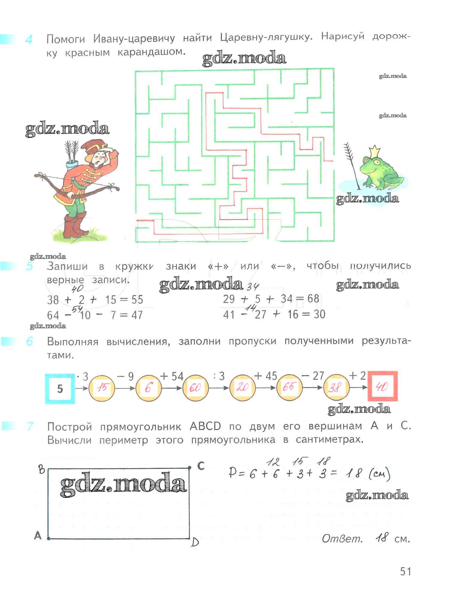 ОТВЕТ на задание № 51 Рабочая тетрадь по Математике 3 класс Дорофеев Перспектива