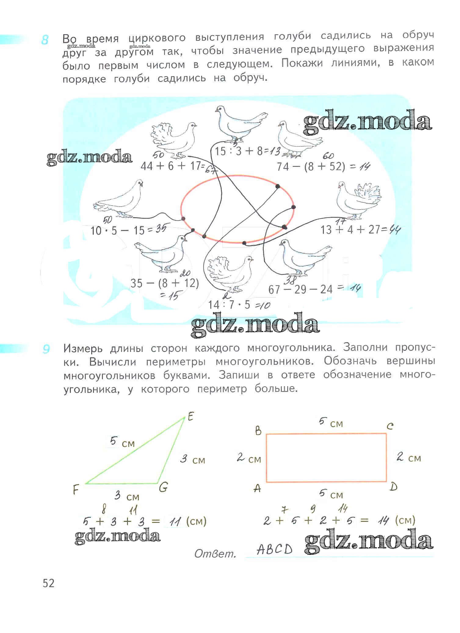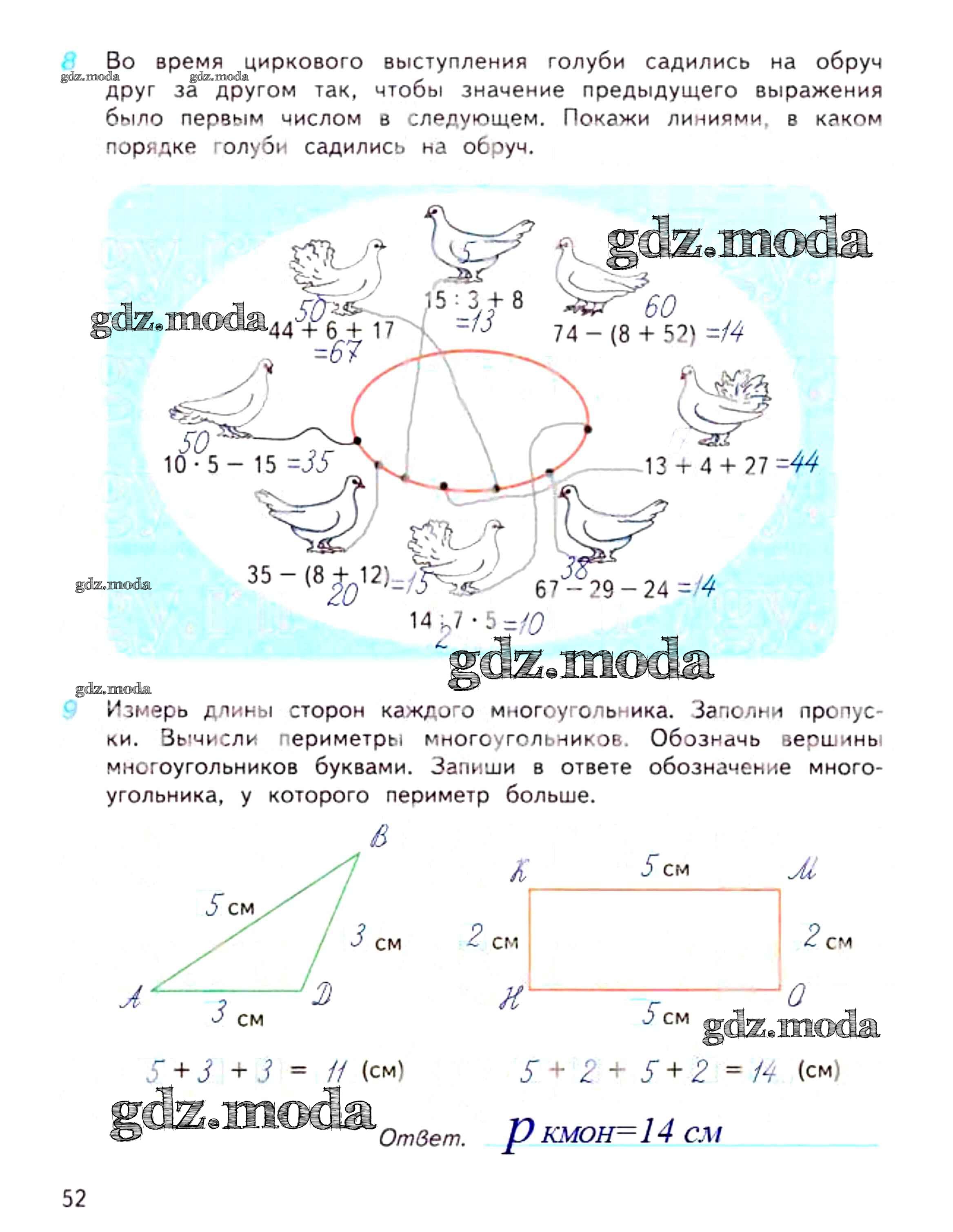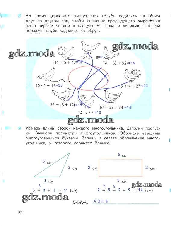 ОТВЕТ на задание № 52 Рабочая тетрадь по Математике 3 класс Дорофеев Перспектива