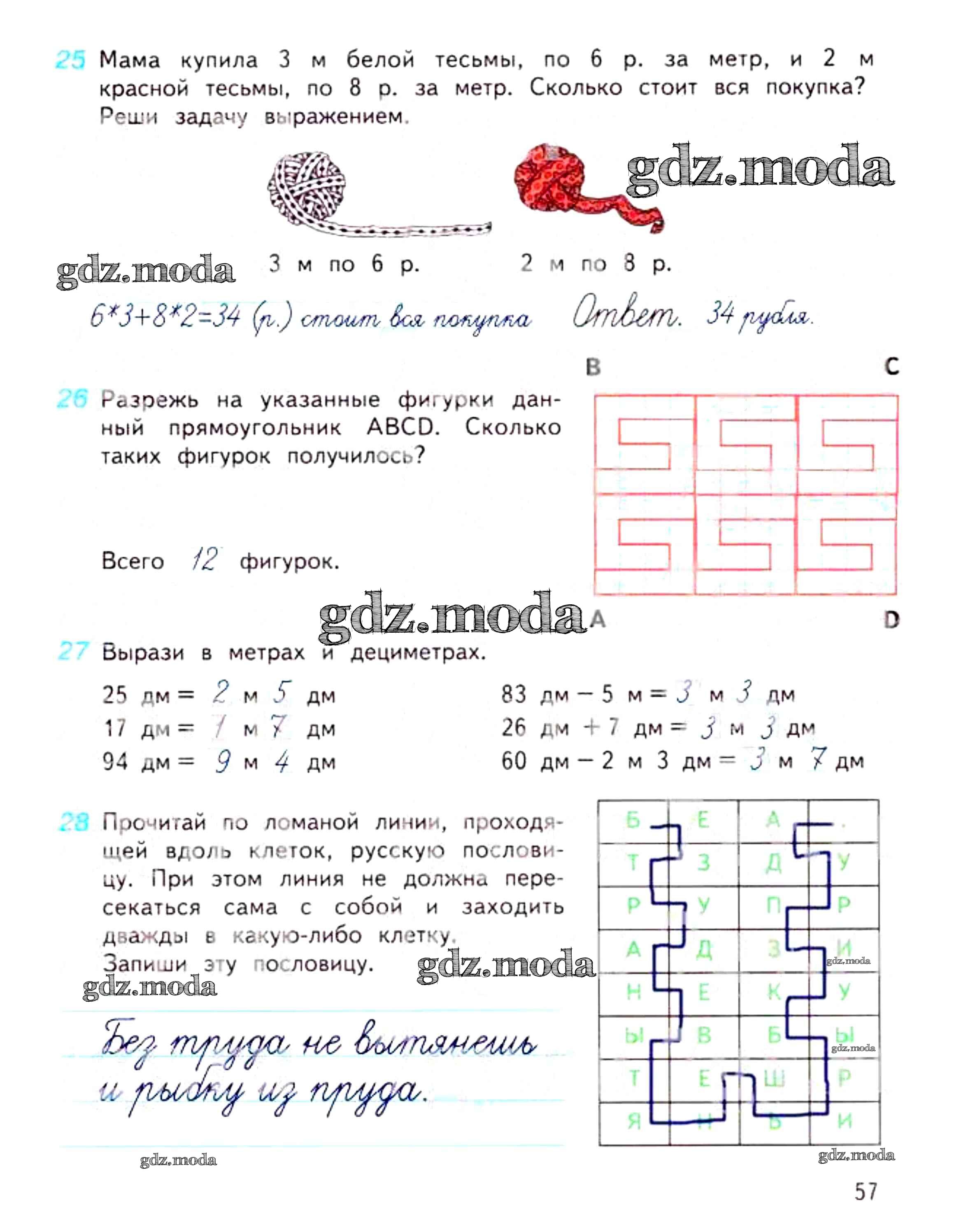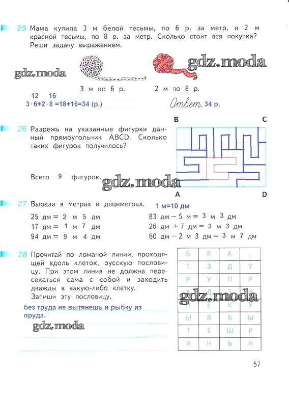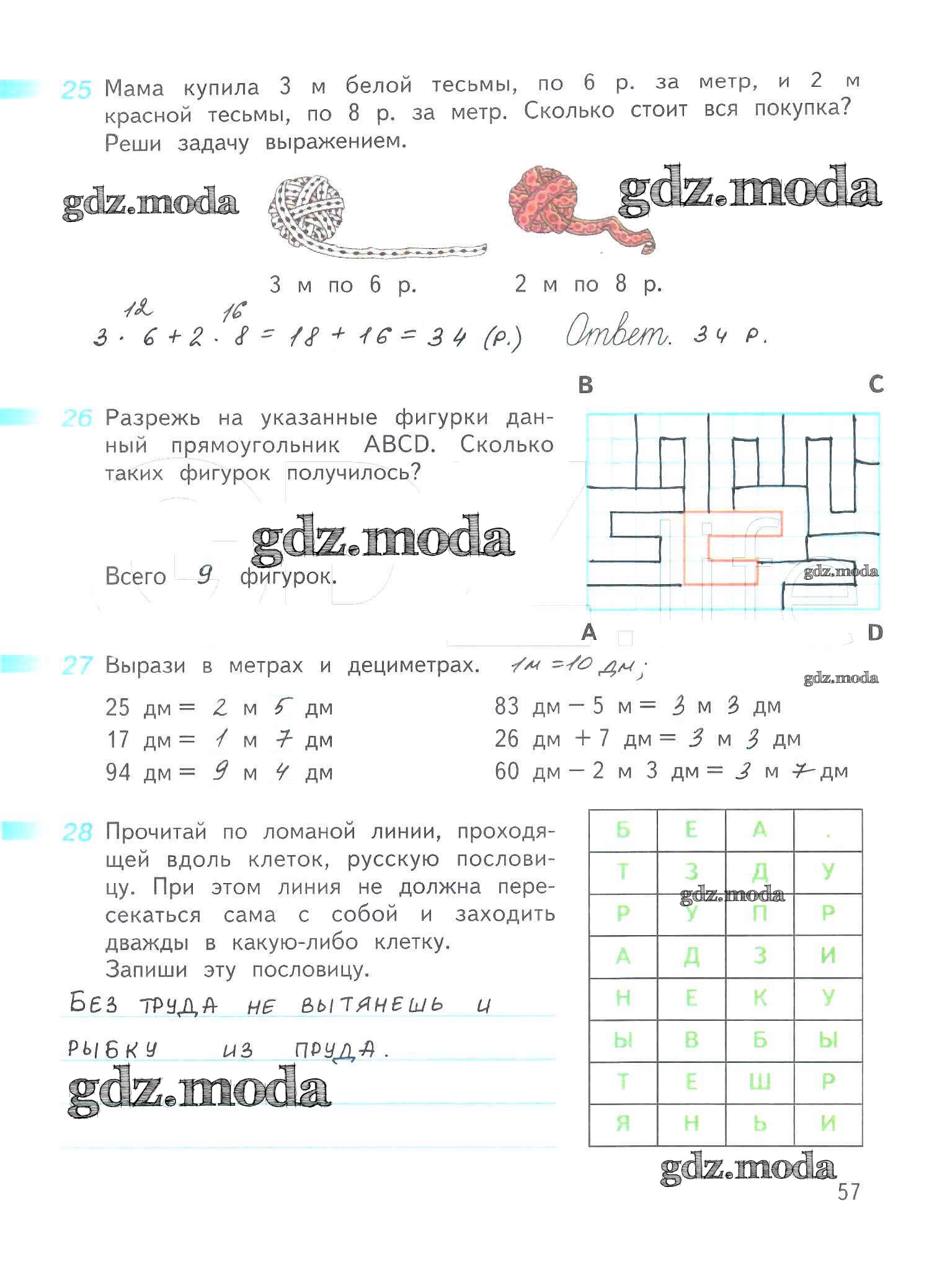 ОТВЕТ на задание № 57 Рабочая тетрадь по Математике 3 класс Дорофеев Перспектива