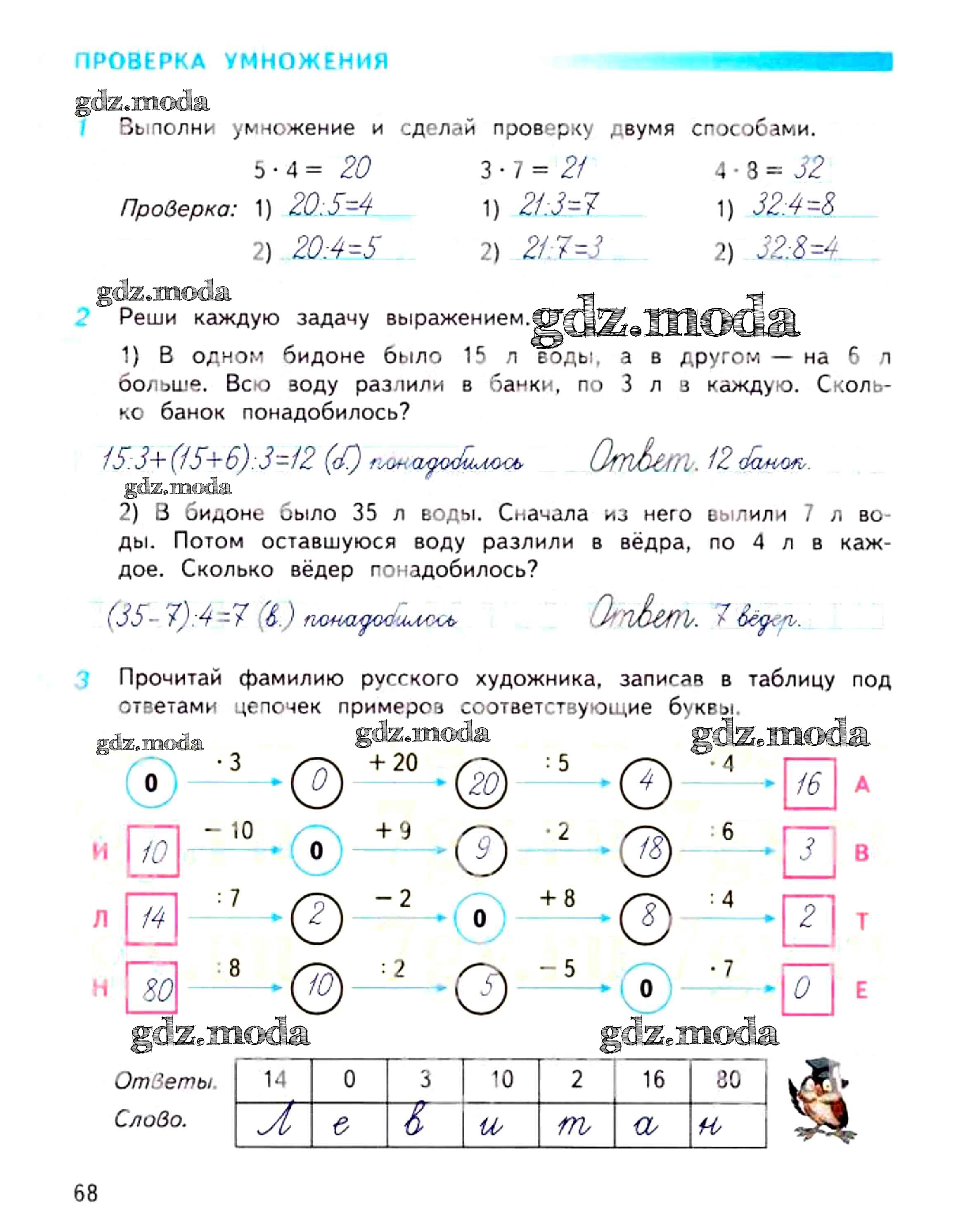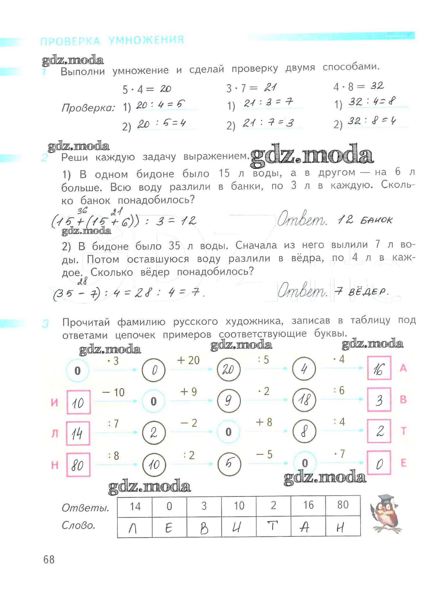 ОТВЕТ на задание № 68 Рабочая тетрадь по Математике 3 класс Дорофеев Перспектива