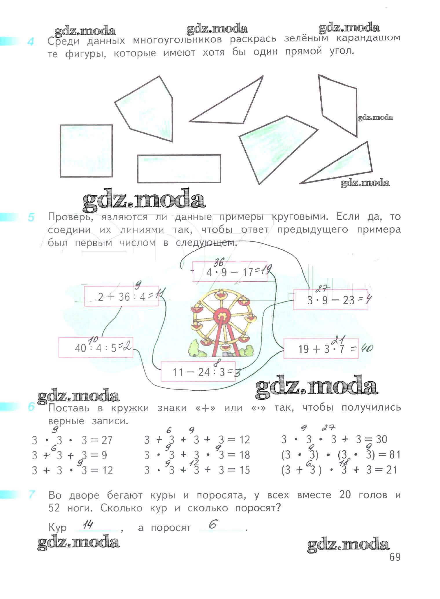 ОТВЕТ на задание № 69 Рабочая тетрадь по Математике 3 класс Дорофеев Перспектива