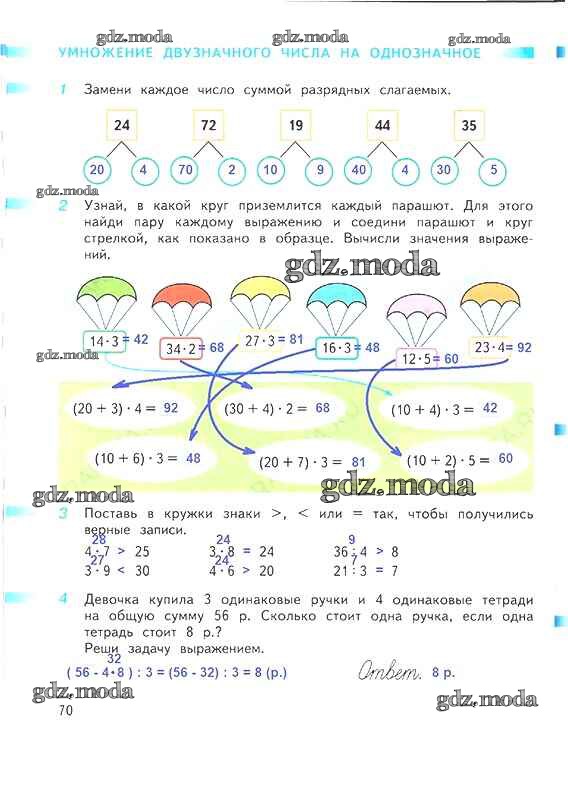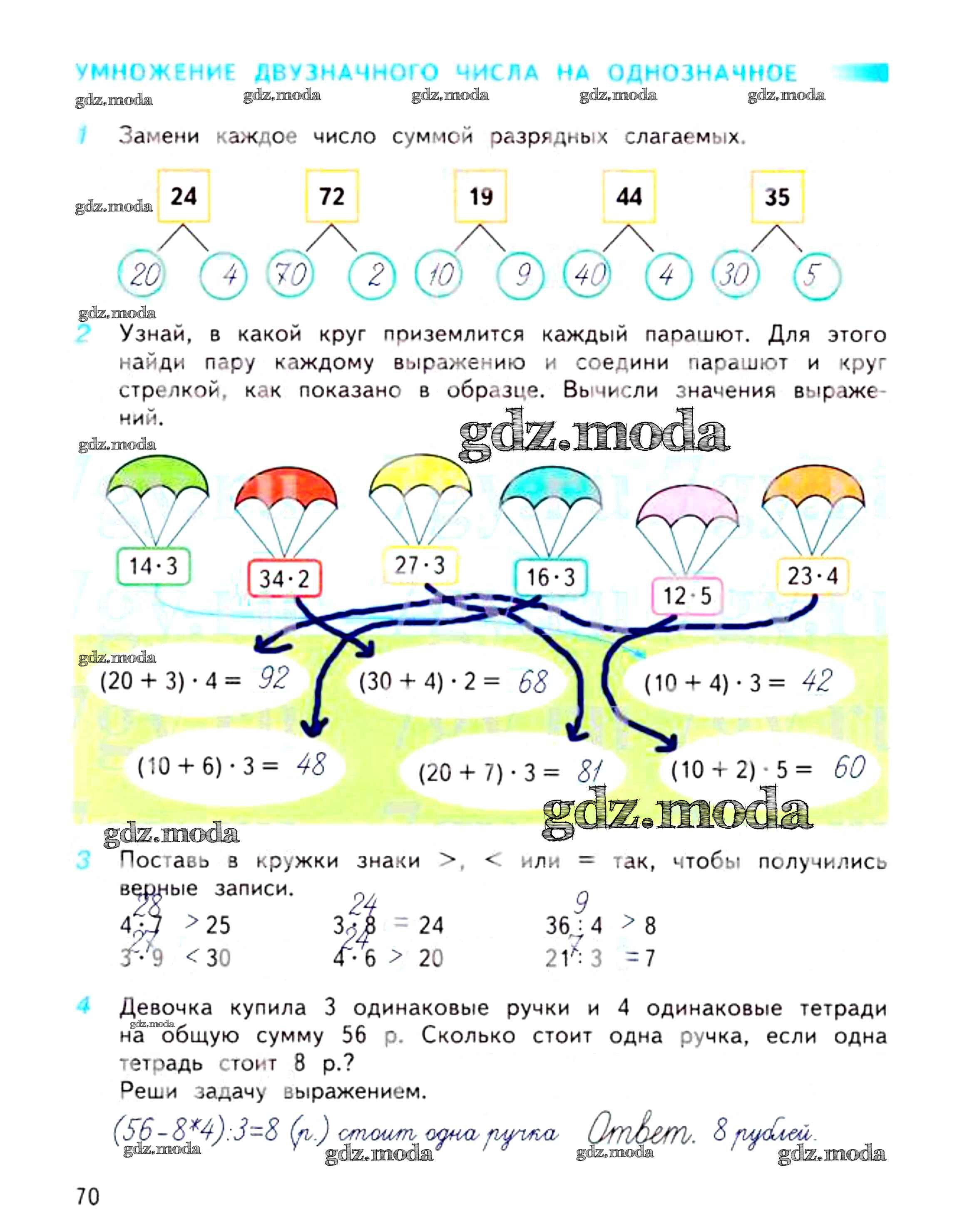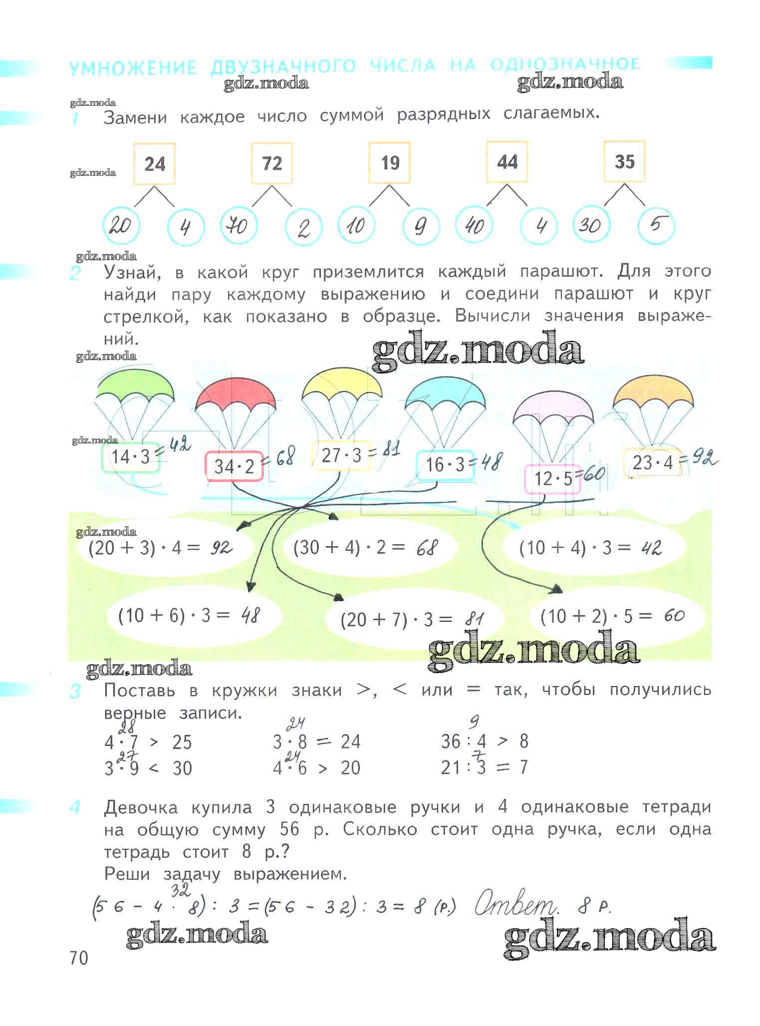 ОТВЕТ на задание № 70 Рабочая тетрадь по Математике 3 класс Дорофеев Перспектива