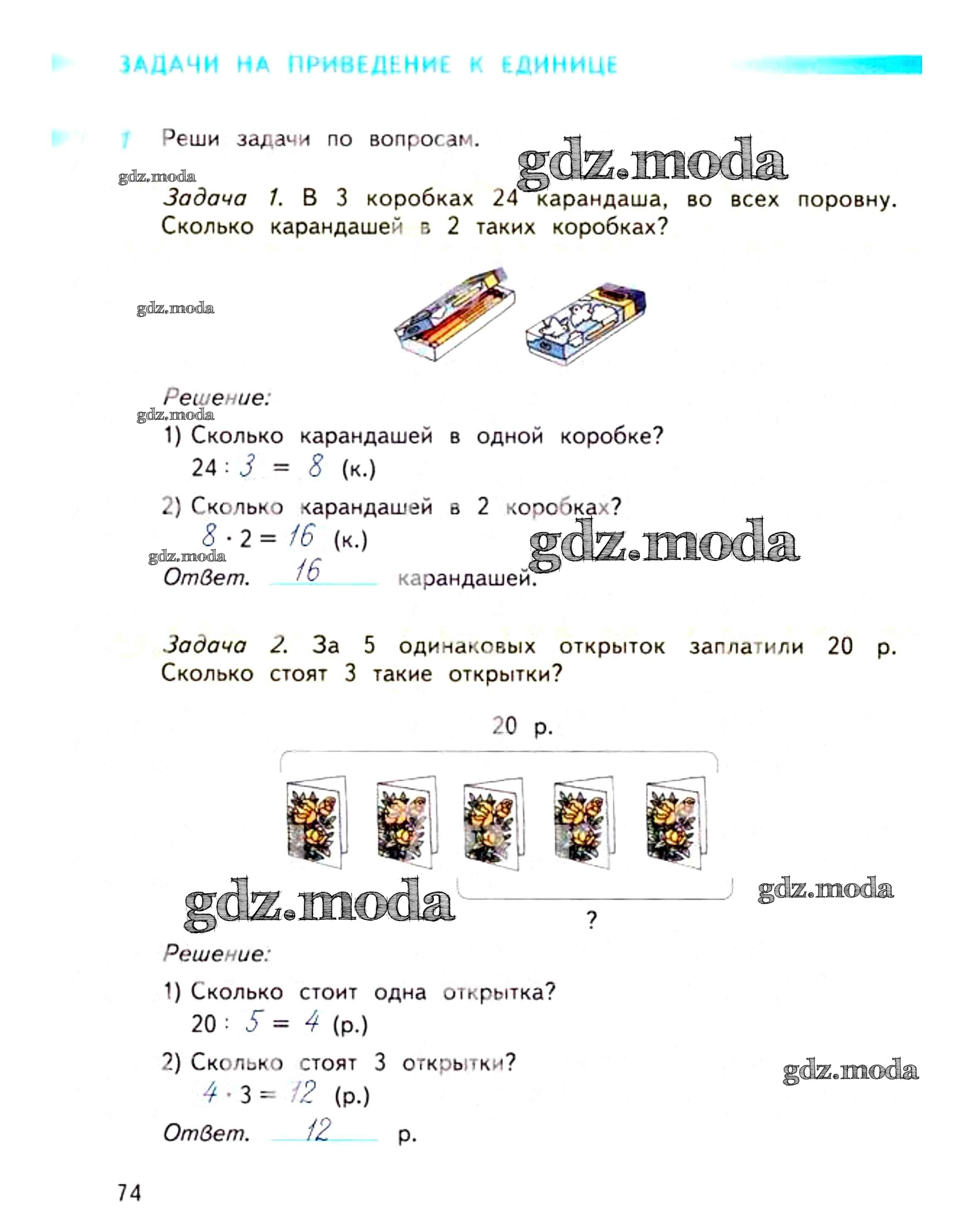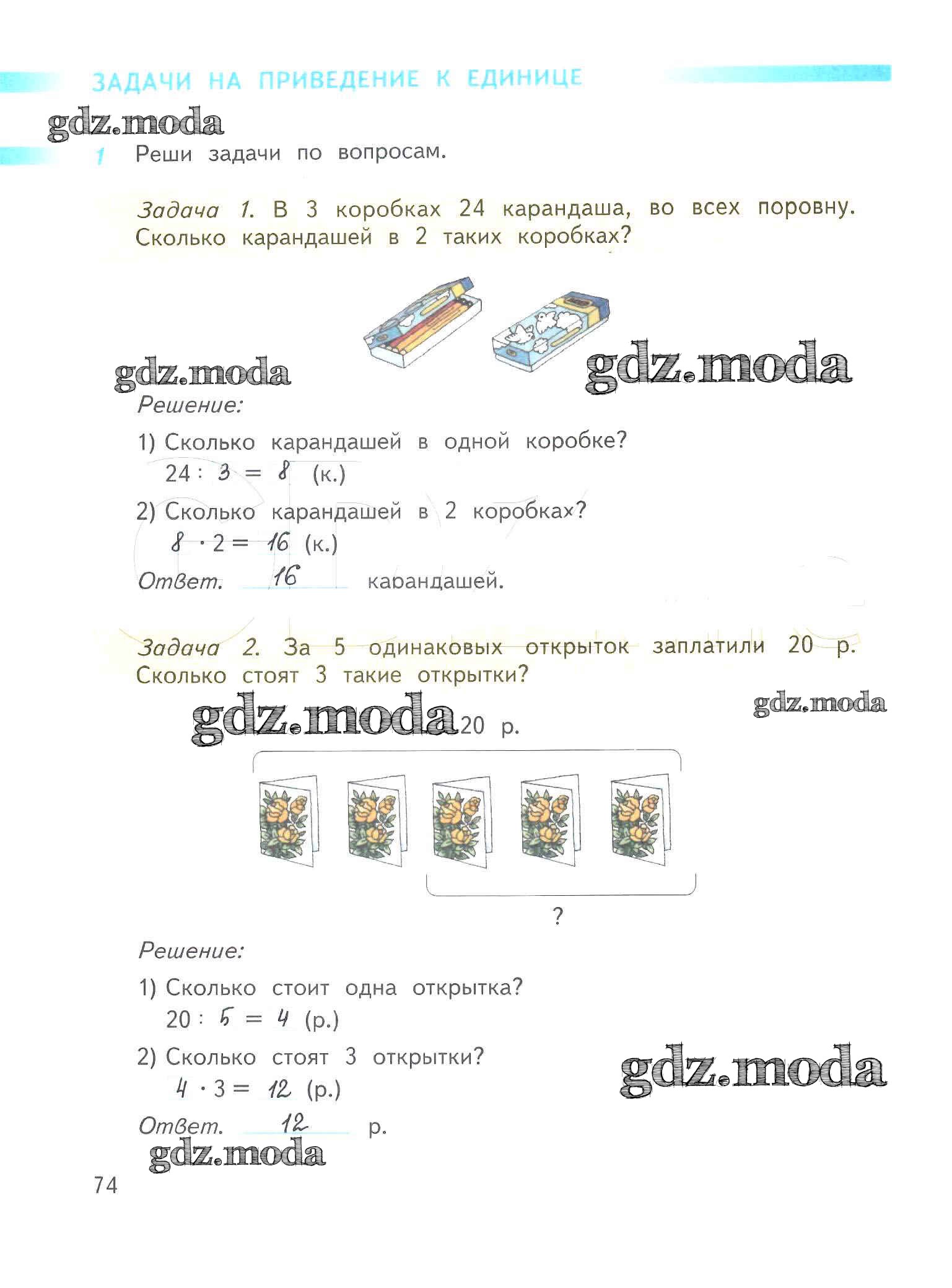 ОТВЕТ на задание № 74 Рабочая тетрадь по Математике 3 класс Дорофеев Перспектива