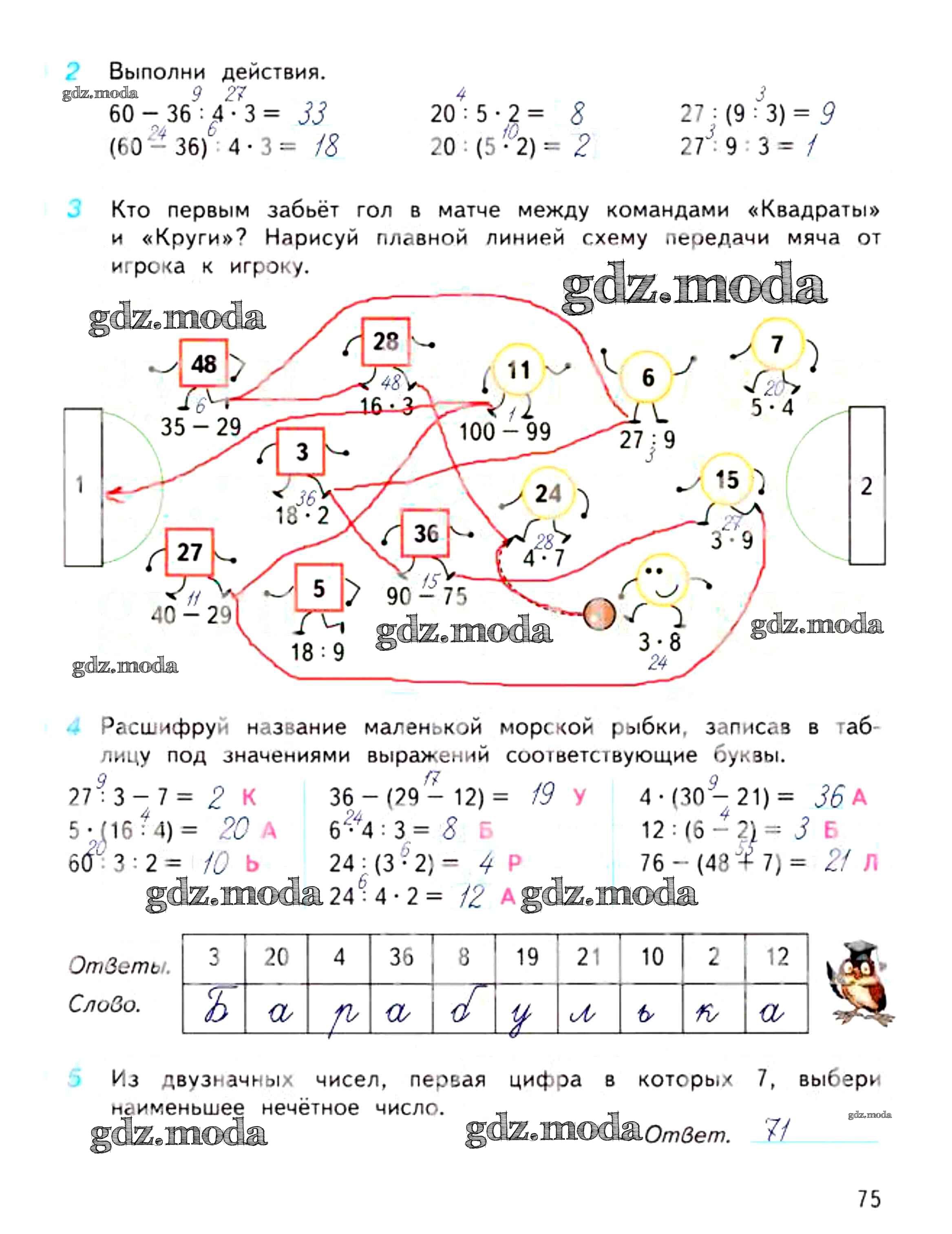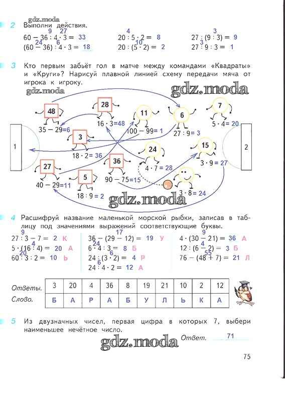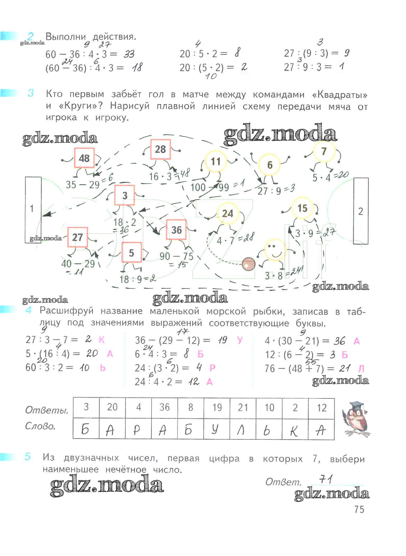 ОТВЕТ на задание № 75 Рабочая тетрадь по Математике 3 класс Дорофеев Перспектива