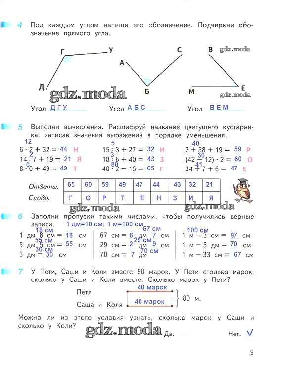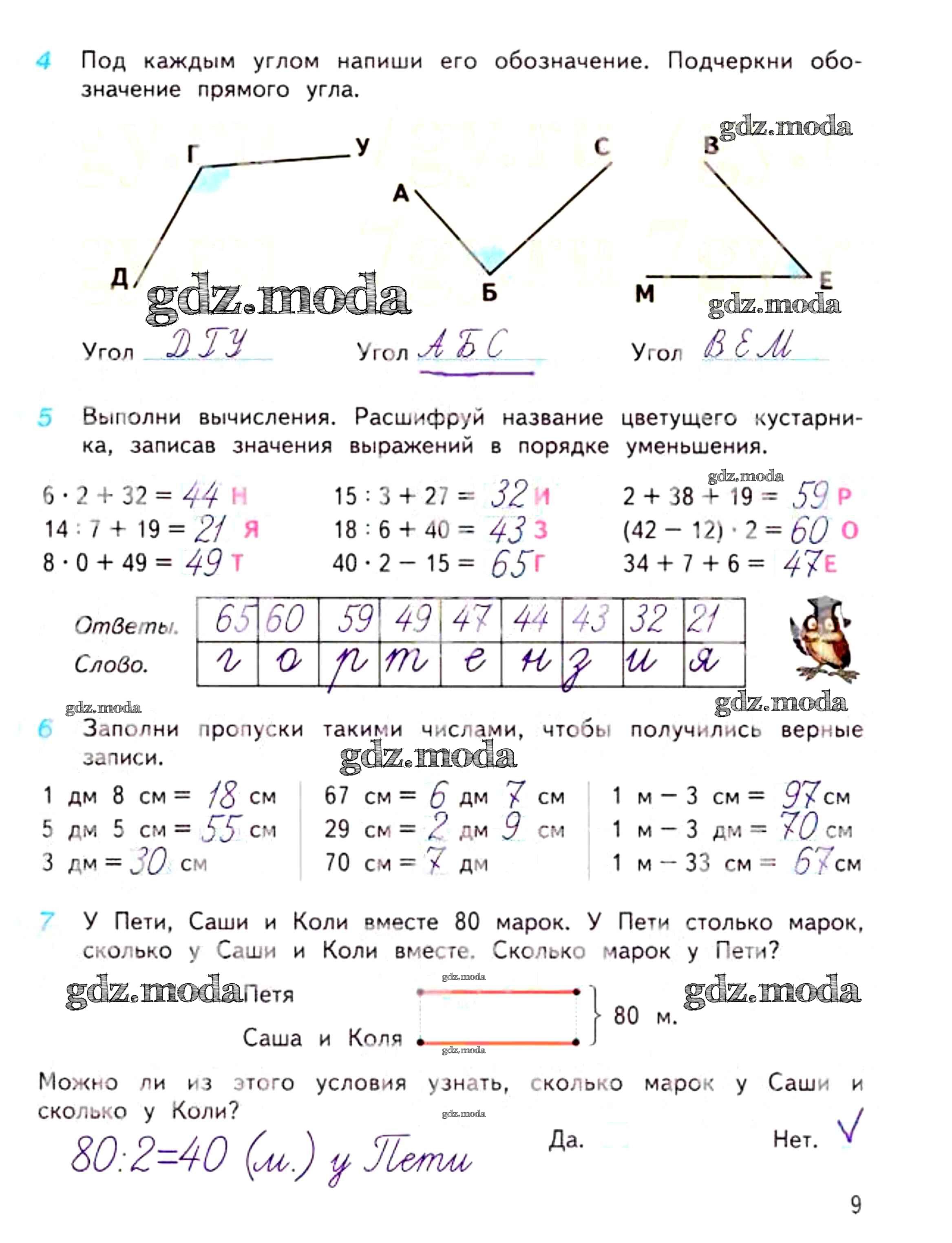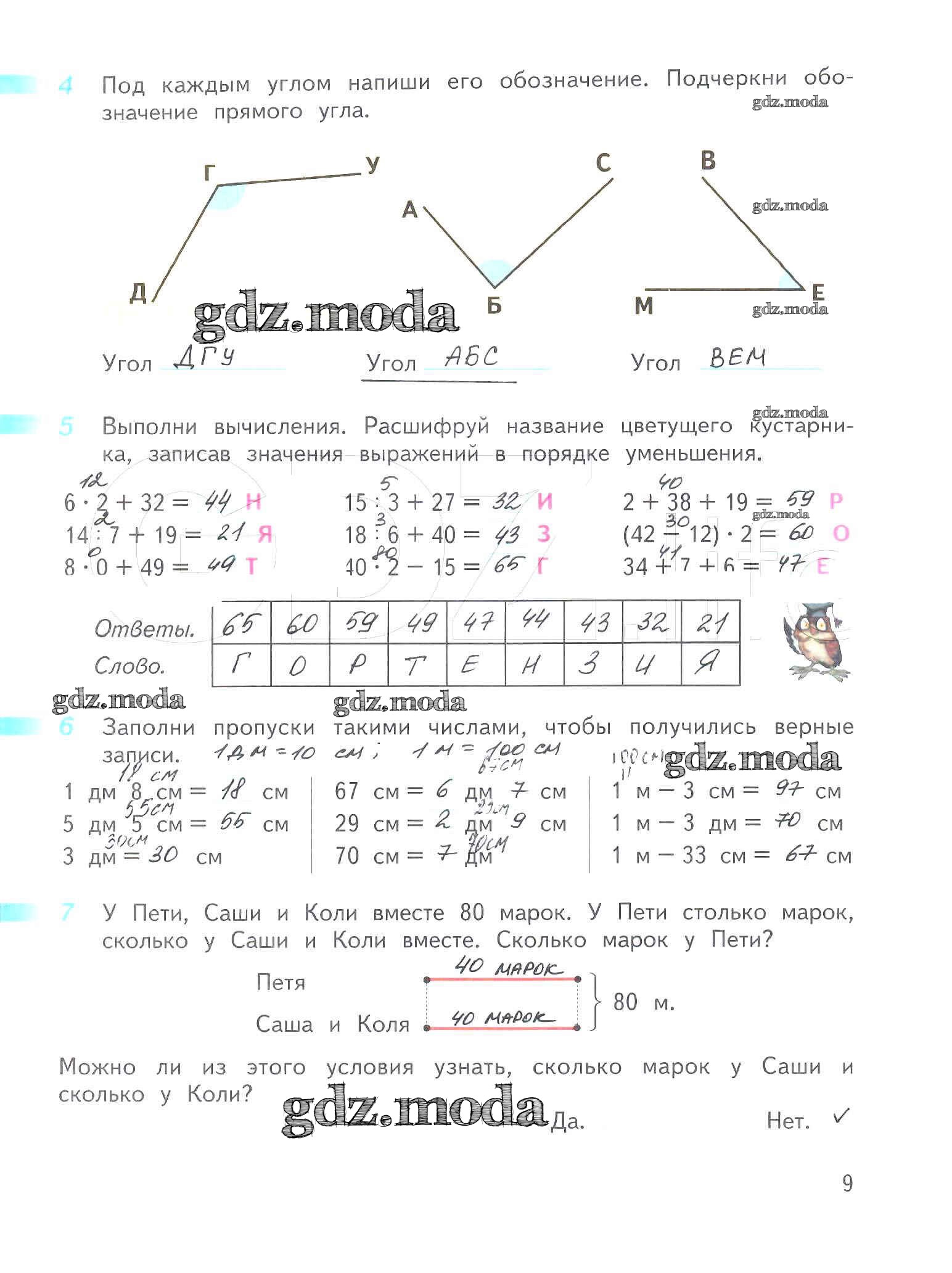 ГДЗ решение к заданию № 9 Математика 3 класс рабочая тетрадь Дорофеев Г.В. Просвещение 2017 Часть 1, Часть 2 ФГОС бесплатно на гдз.мода!