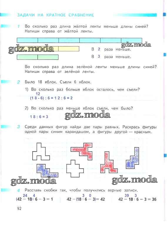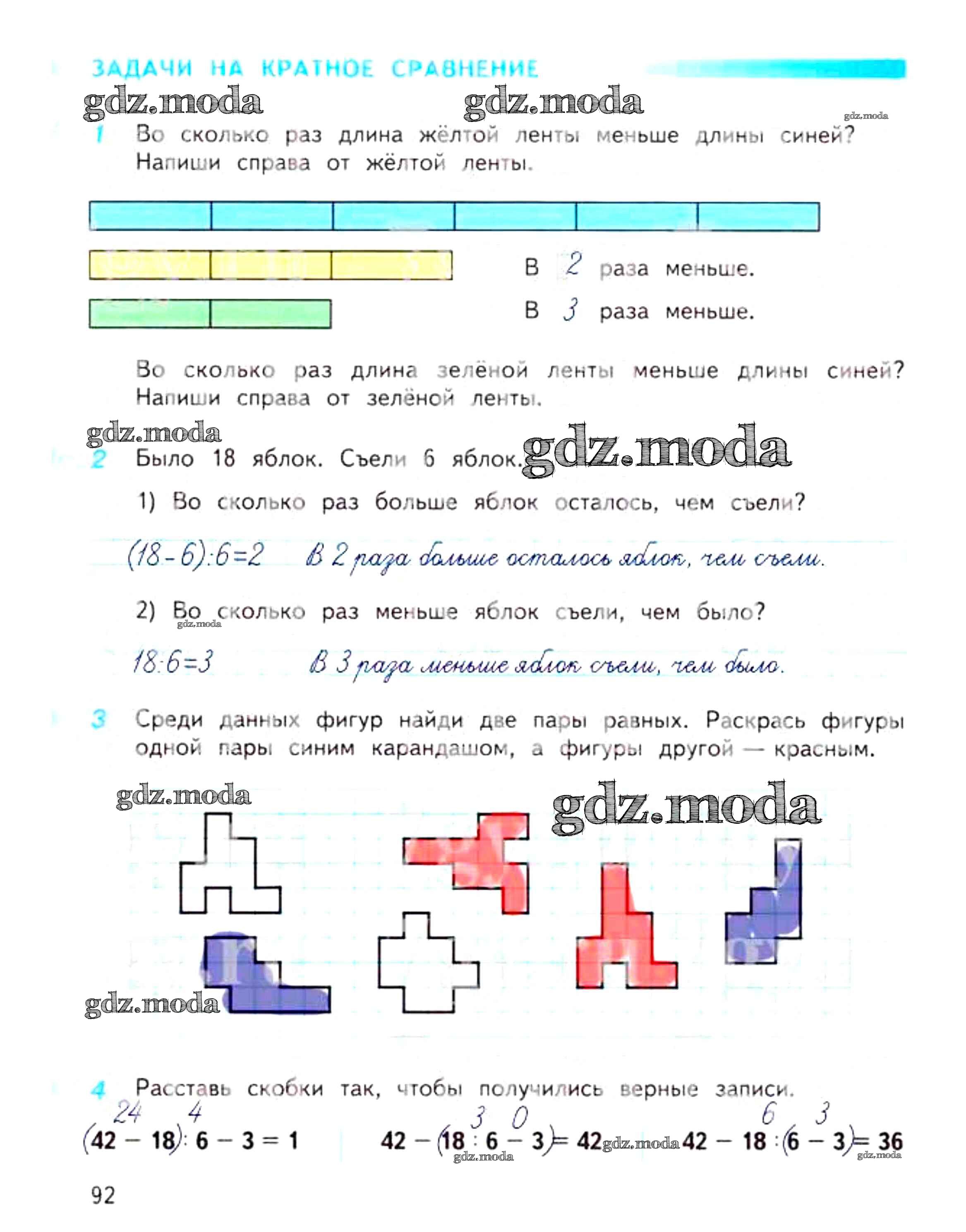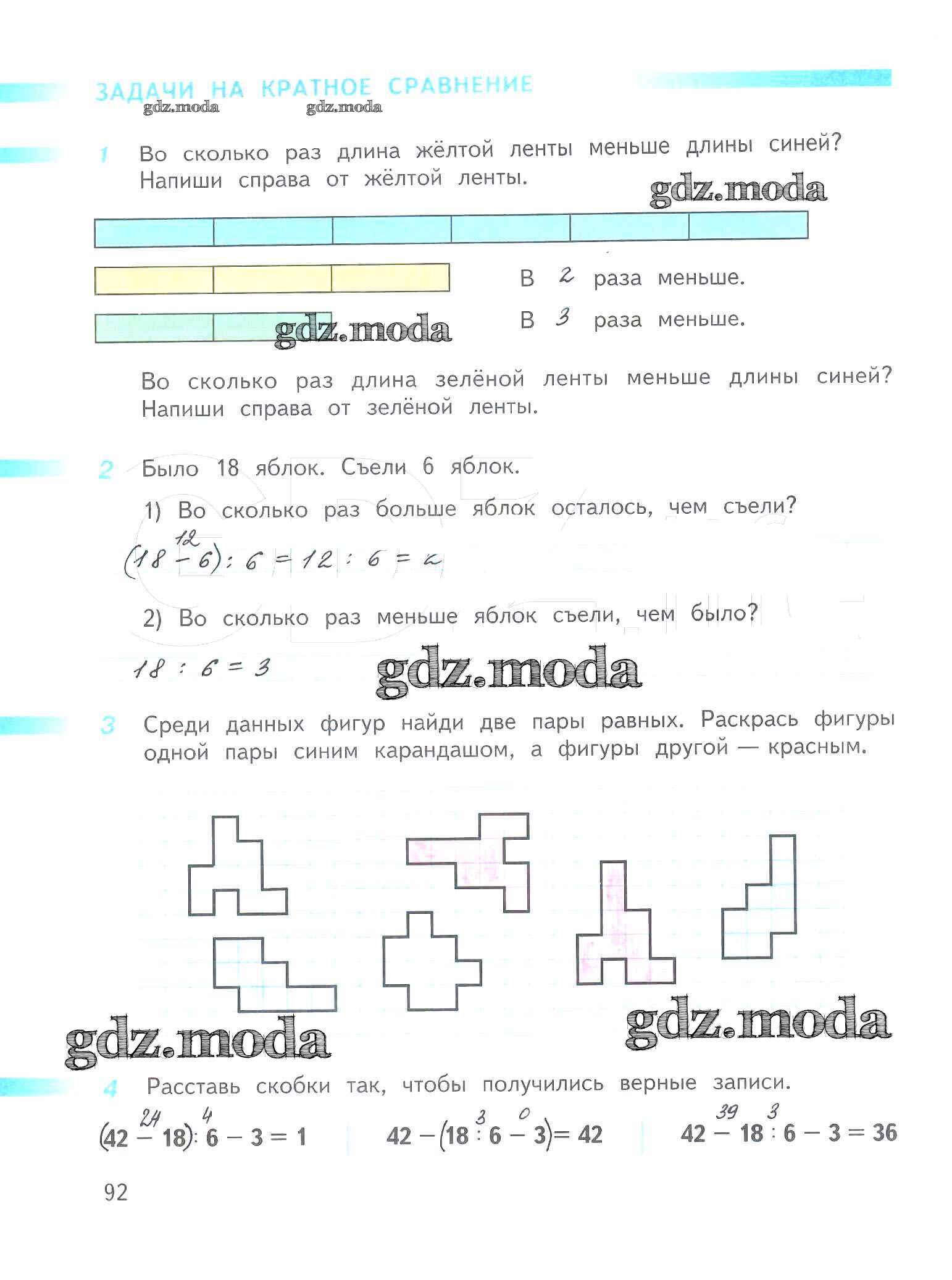 ОТВЕТ на задание № 92 Рабочая тетрадь по Математике 3 класс Дорофеев Перспектива