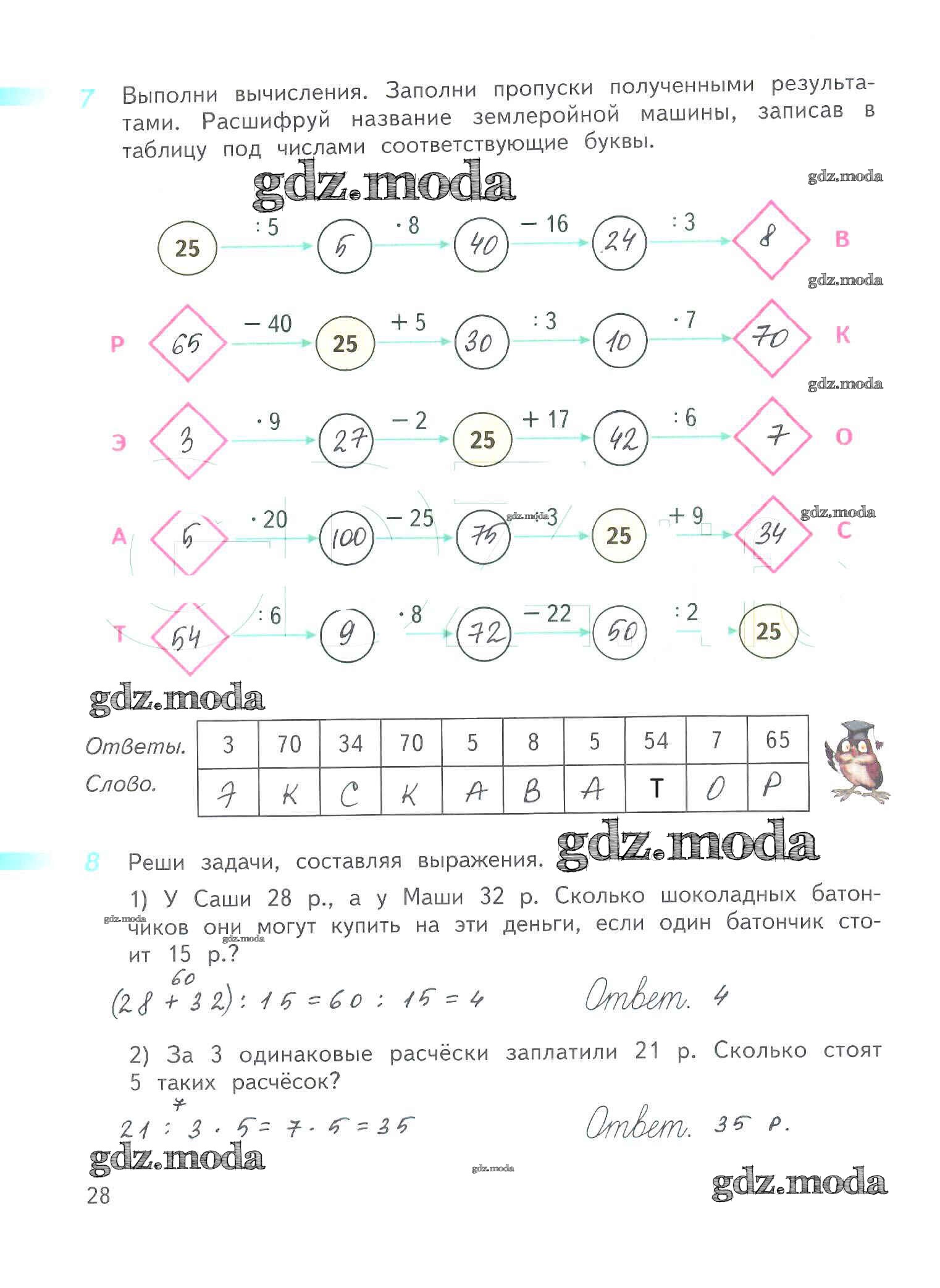 ОТВЕТ на задание № 28 Рабочая тетрадь по Математике 3 класс Дорофеев Перспектива
