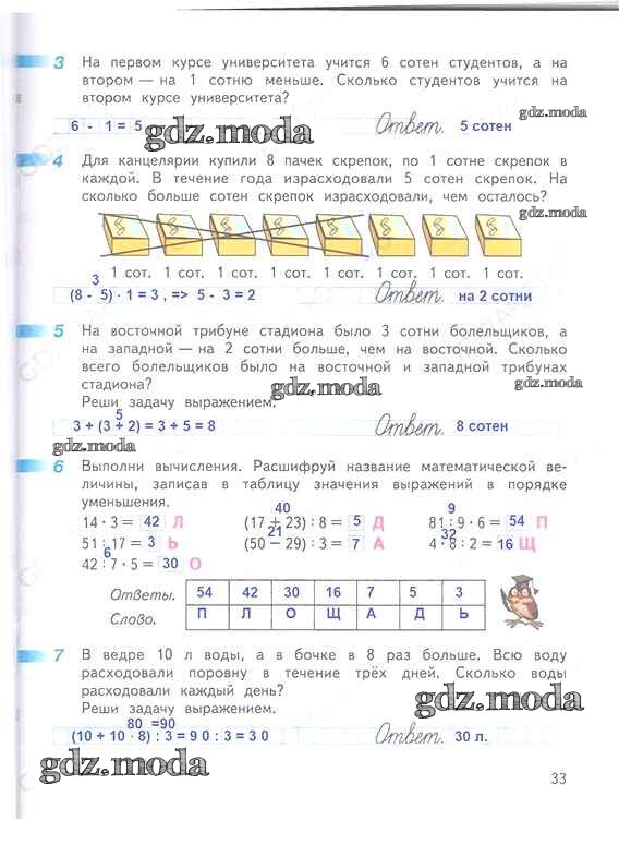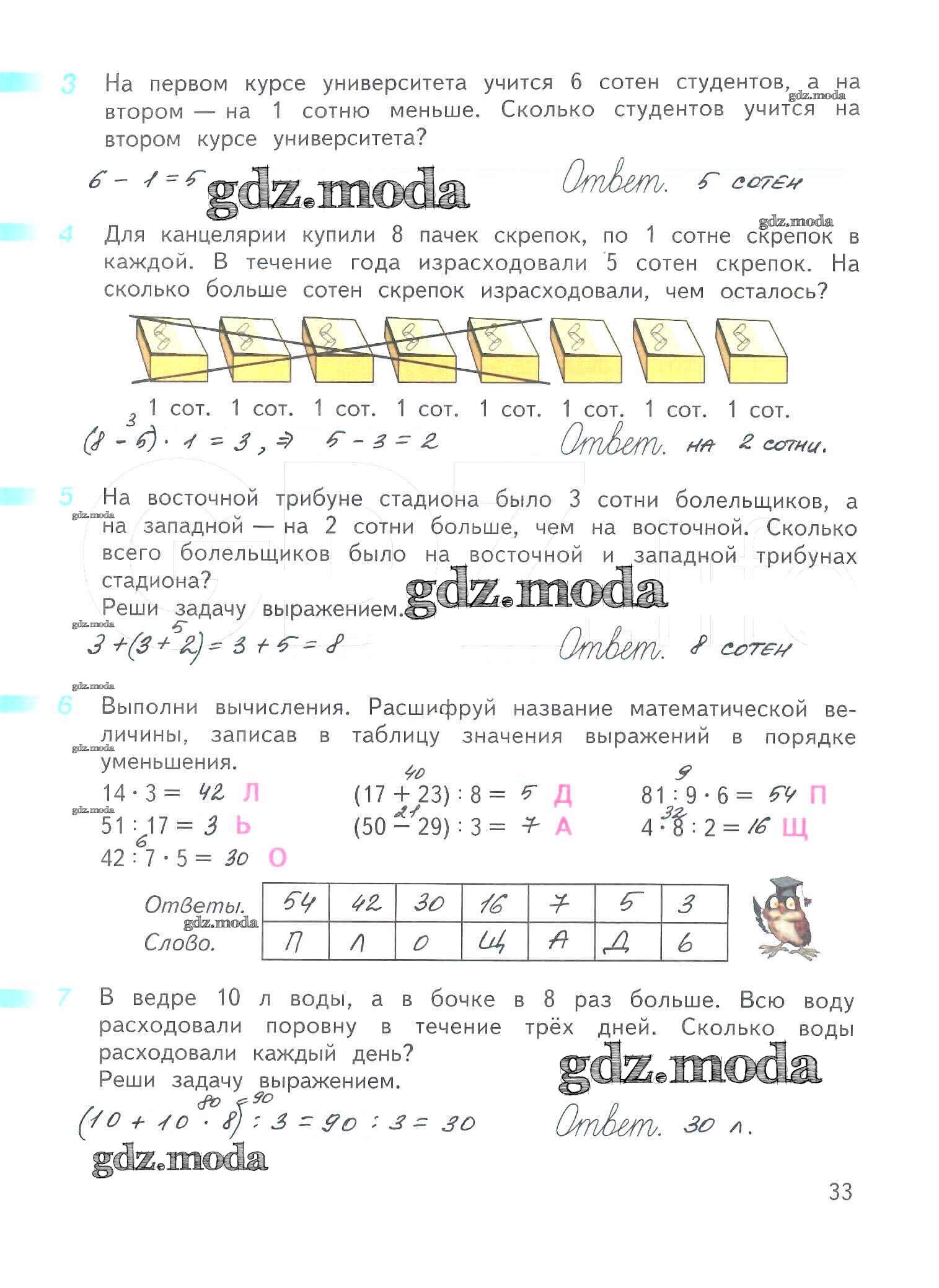ОТВЕТ на задание № 33 Рабочая тетрадь по Математике 3 класс Дорофеев Перспектива