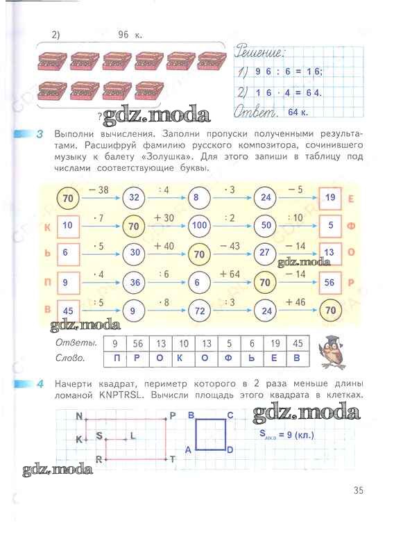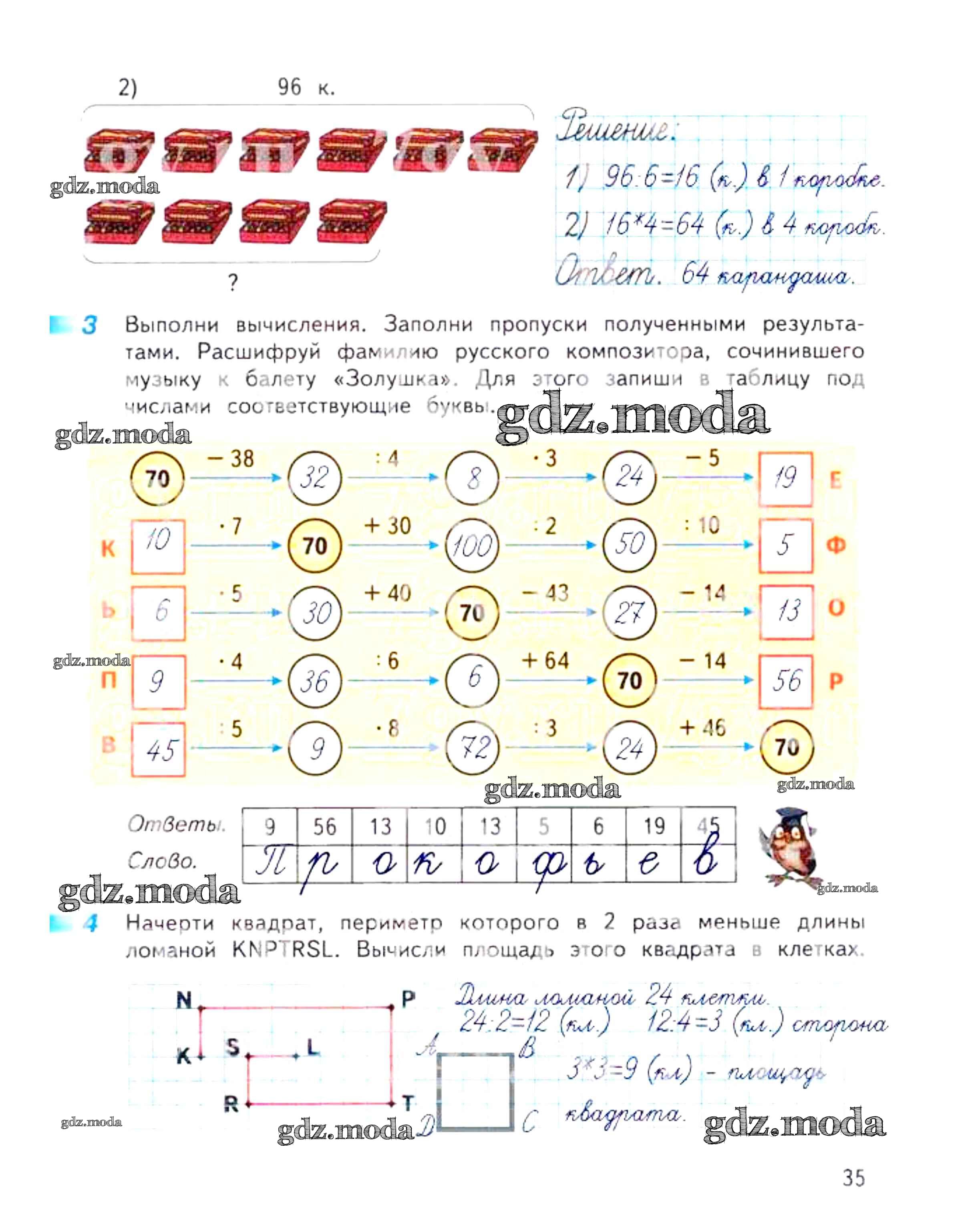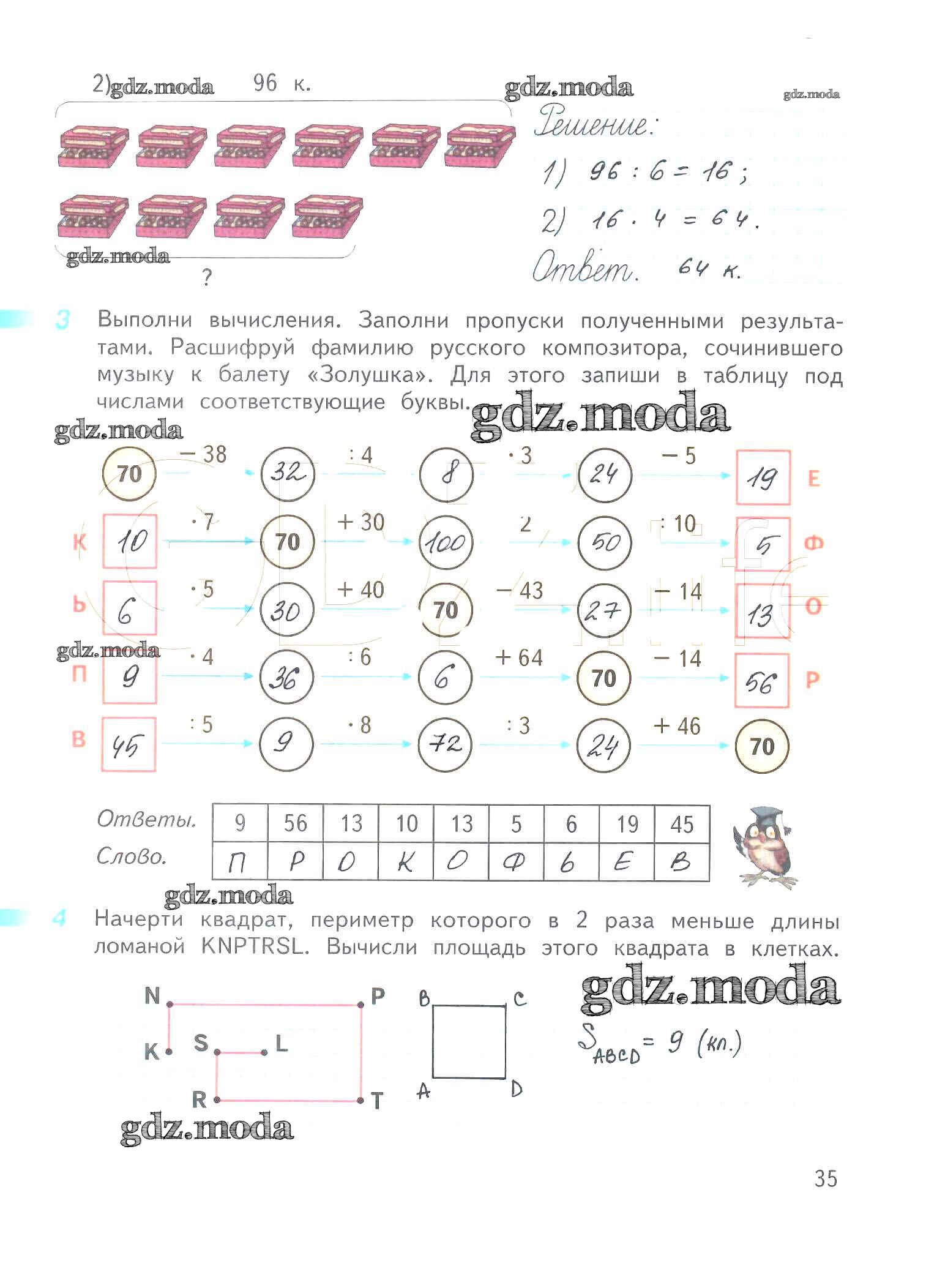 ОТВЕТ на задание № 35 Рабочая тетрадь по Математике 3 класс Дорофеев Перспектива