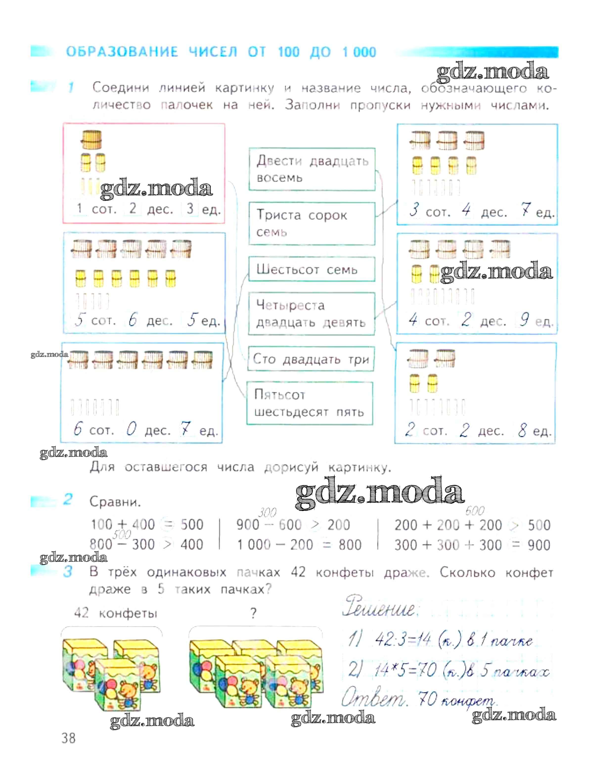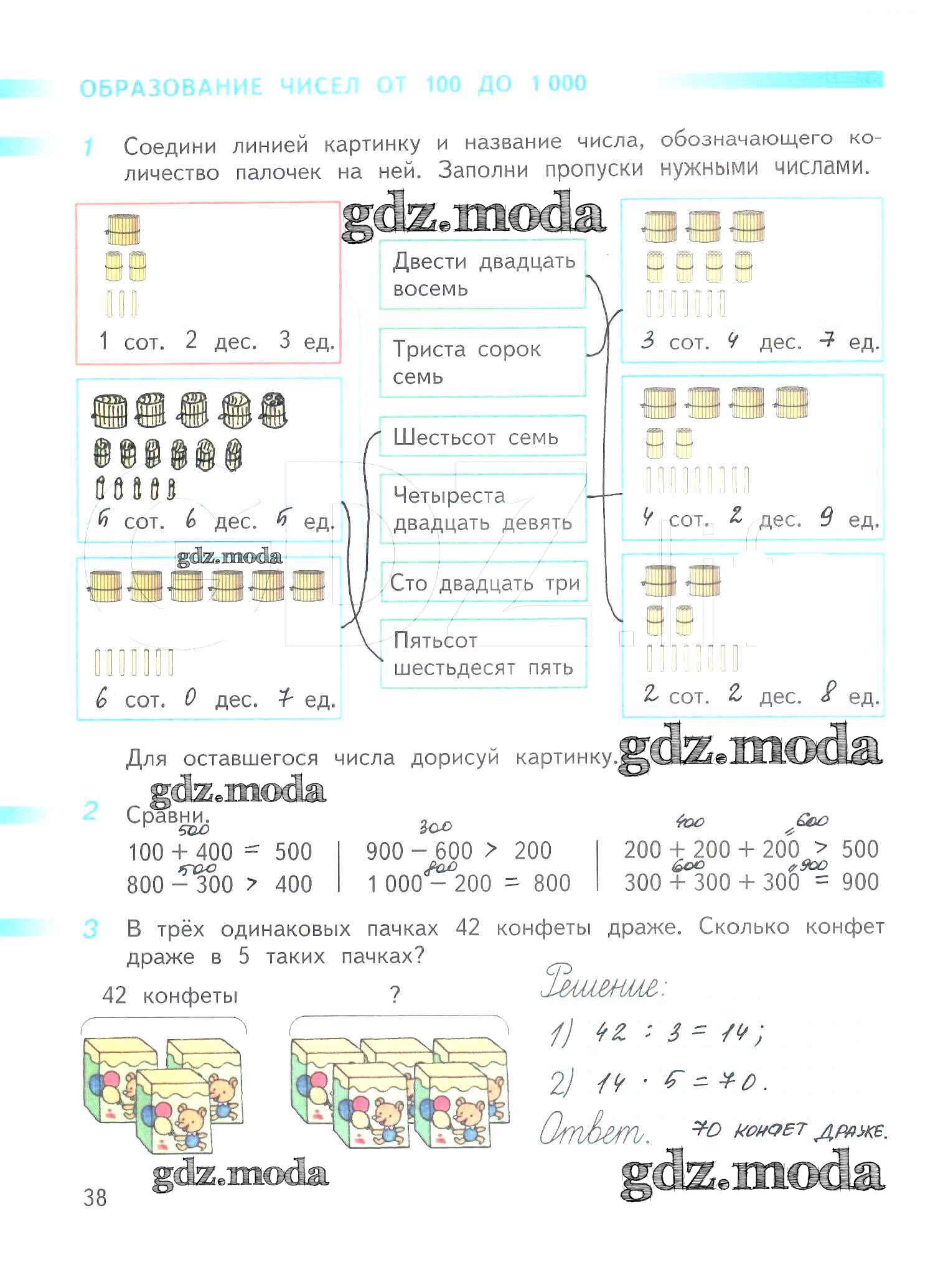 ОТВЕТ на задание № 38 Рабочая тетрадь по Математике 3 класс Дорофеев Перспектива