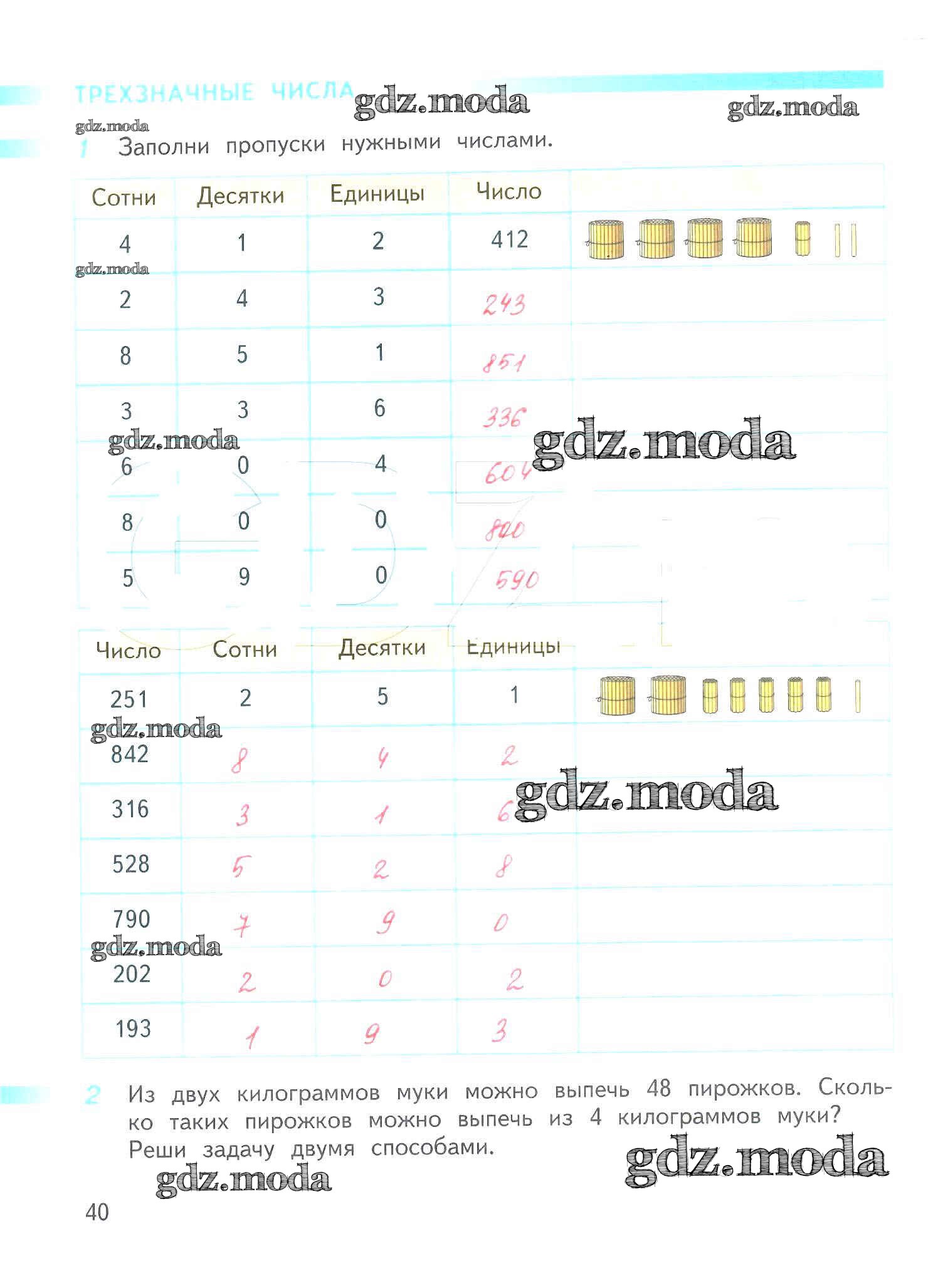 ОТВЕТ на задание № 40 Рабочая тетрадь по Математике 3 класс Дорофеев Перспектива