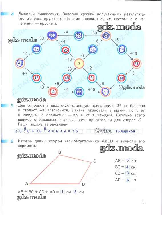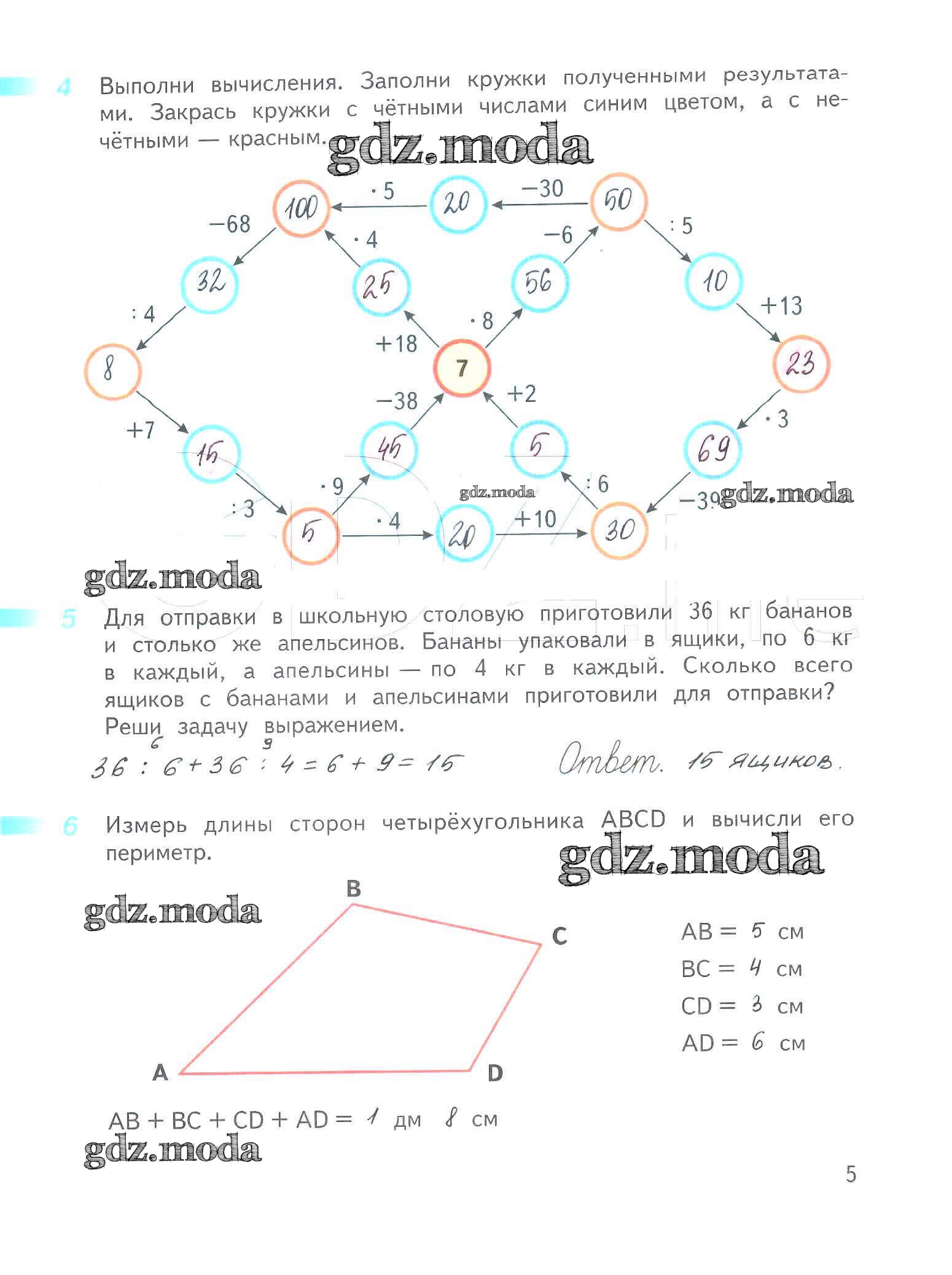 ГДЗ решение к заданию № 5 Математика 3 класс рабочая тетрадь Дорофеев Г.В. Просвещение 2017 Часть 1, Часть 2 ФГОС бесплатно на гдз.мода!