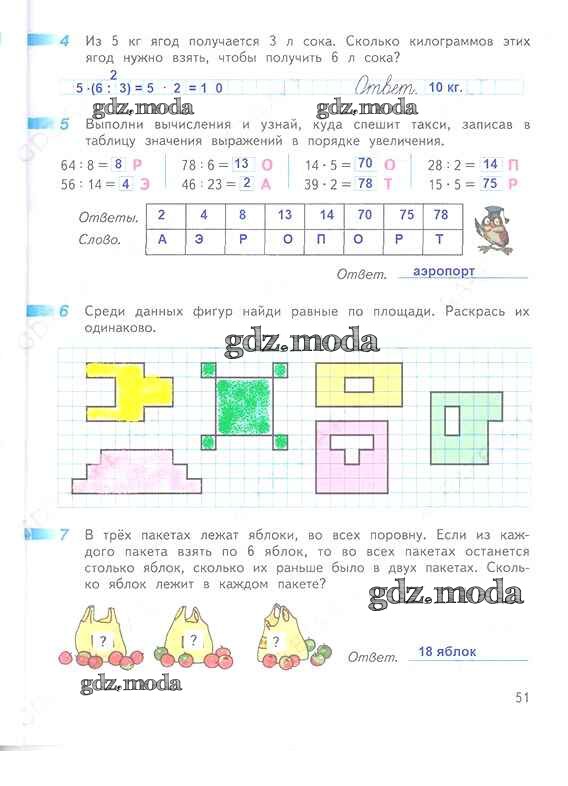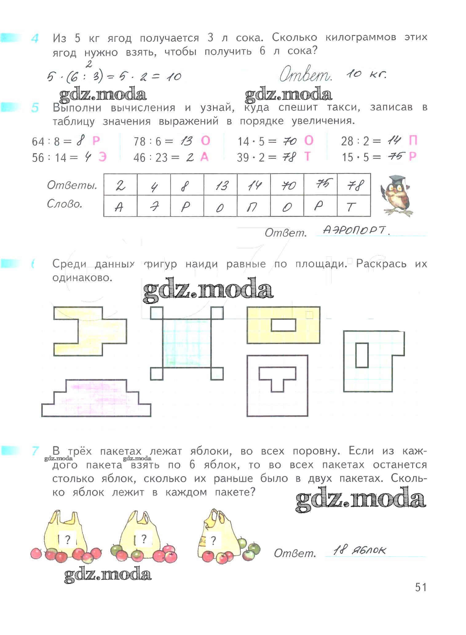 ОТВЕТ на задание № 51 Рабочая тетрадь по Математике 3 класс Дорофеев Перспектива