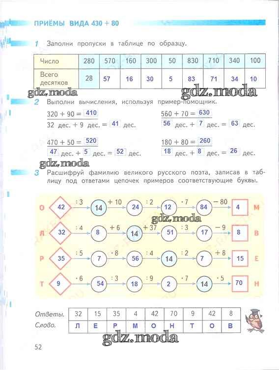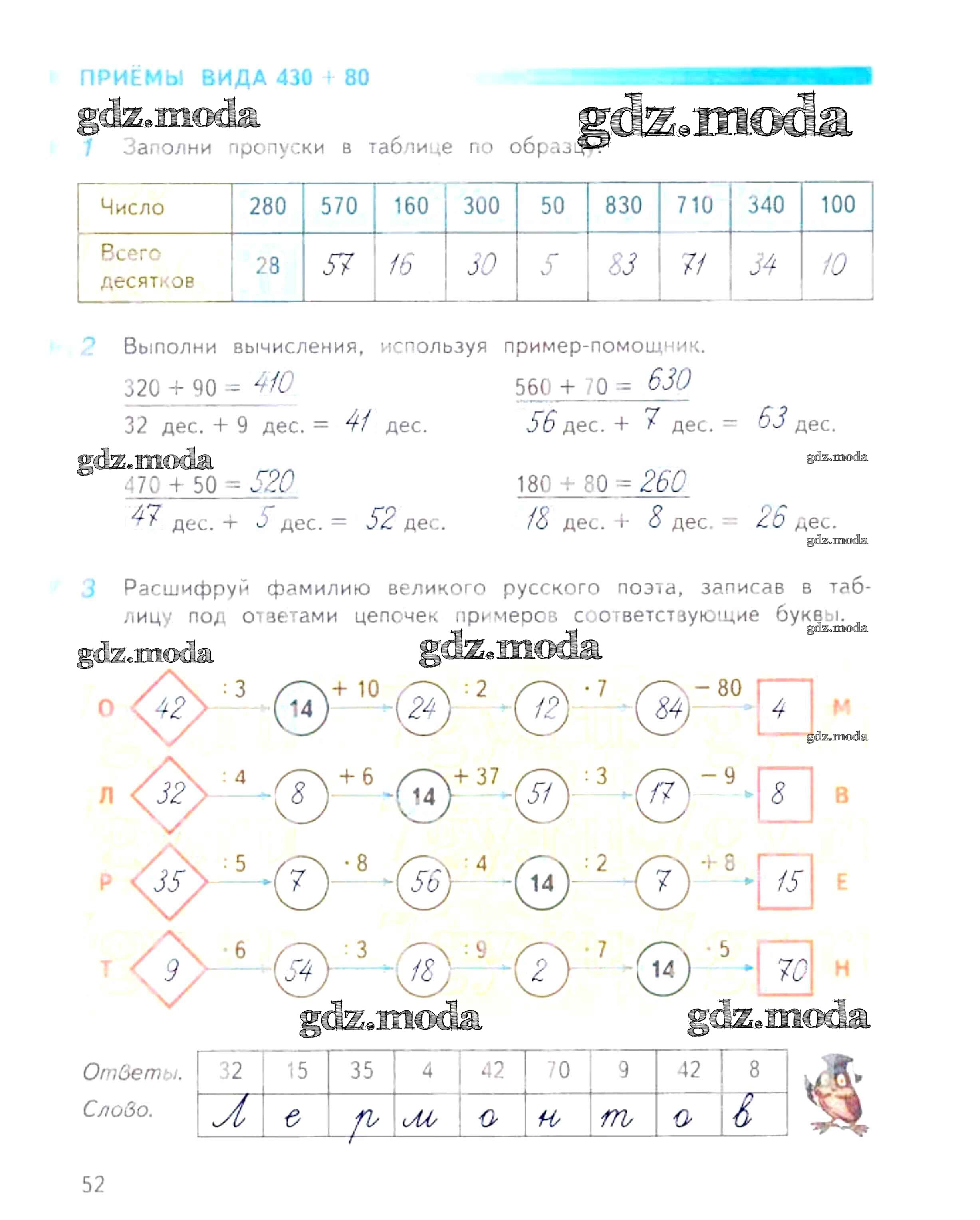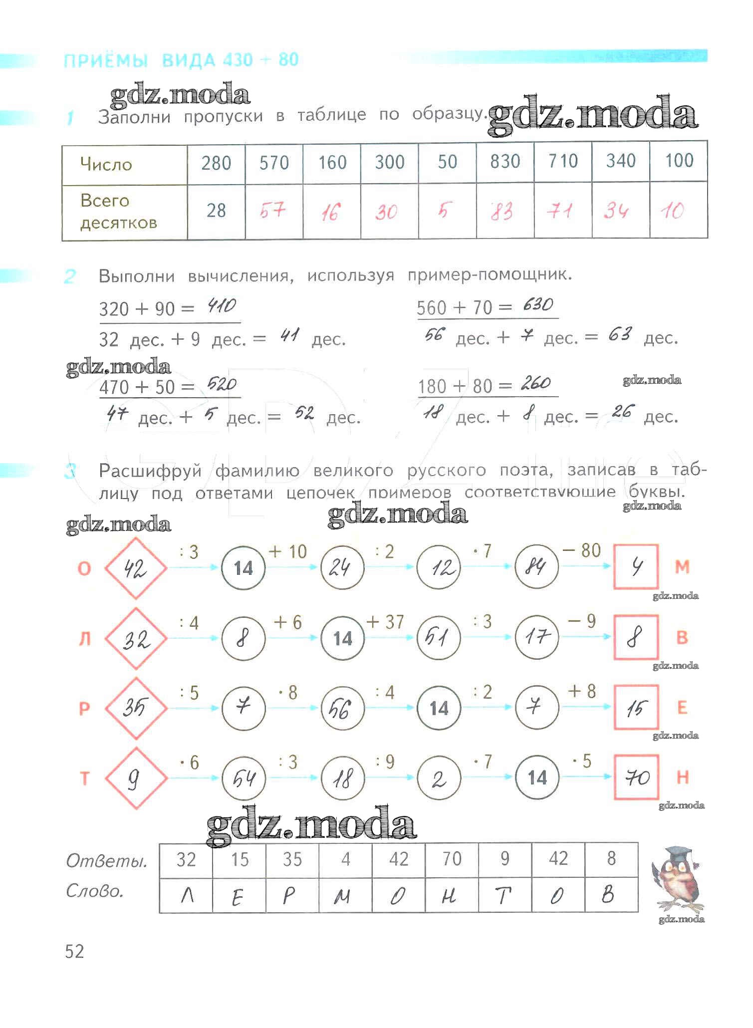 ОТВЕТ на задание № 52 Рабочая тетрадь по Математике 3 класс Дорофеев Перспектива