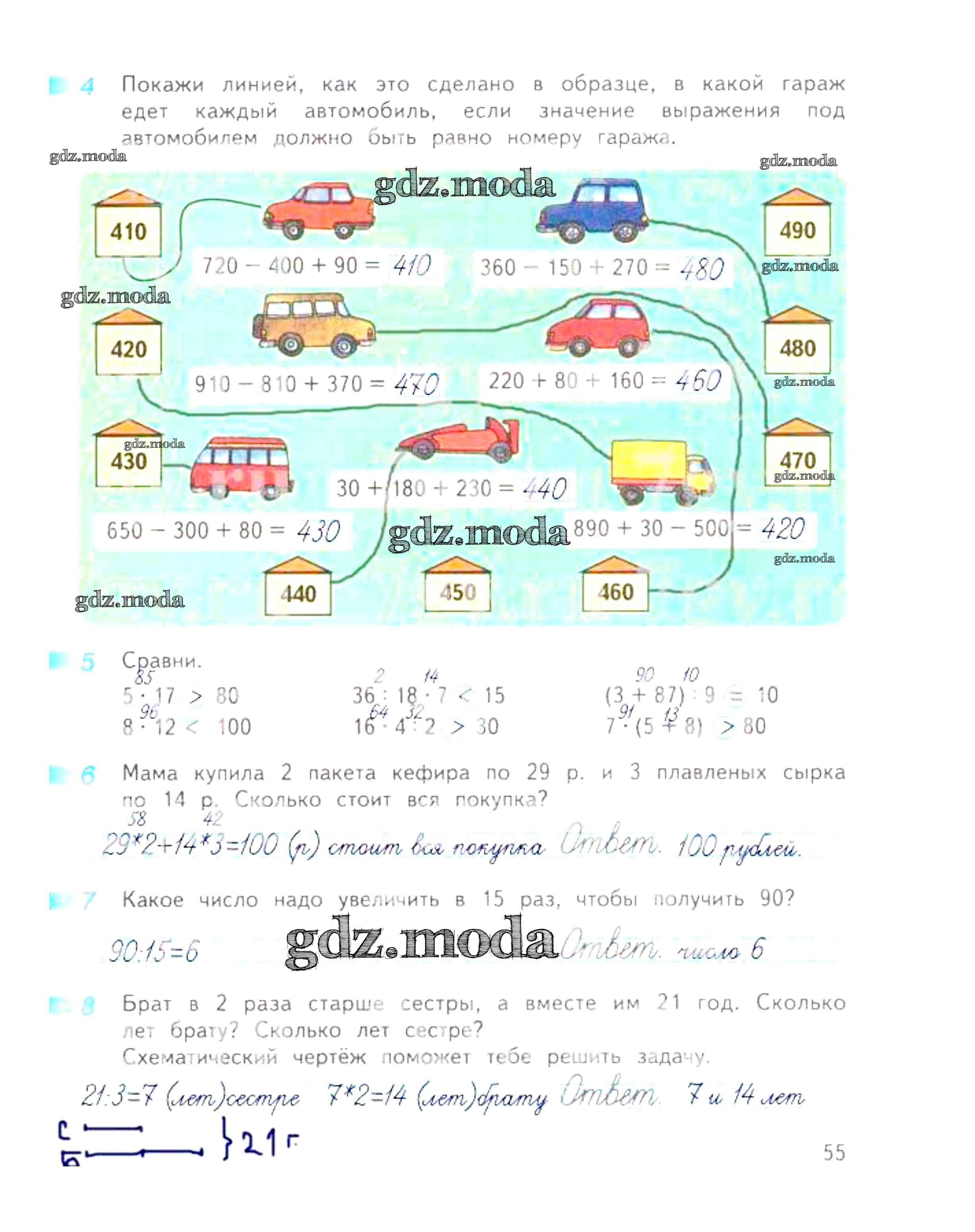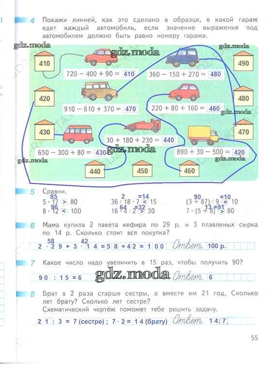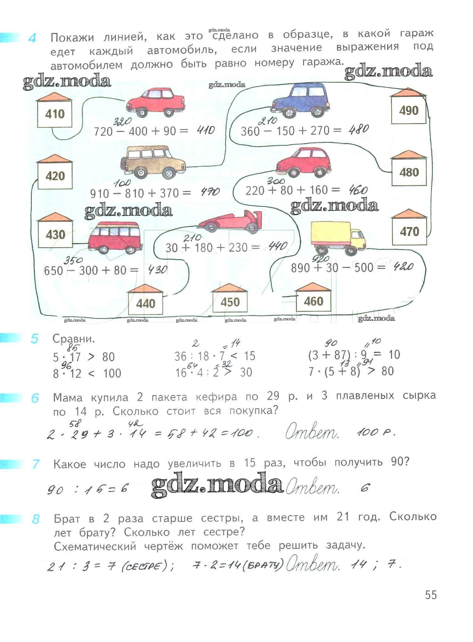 ОТВЕТ на задание № 55 Рабочая тетрадь по Математике 3 класс Дорофеев Перспектива