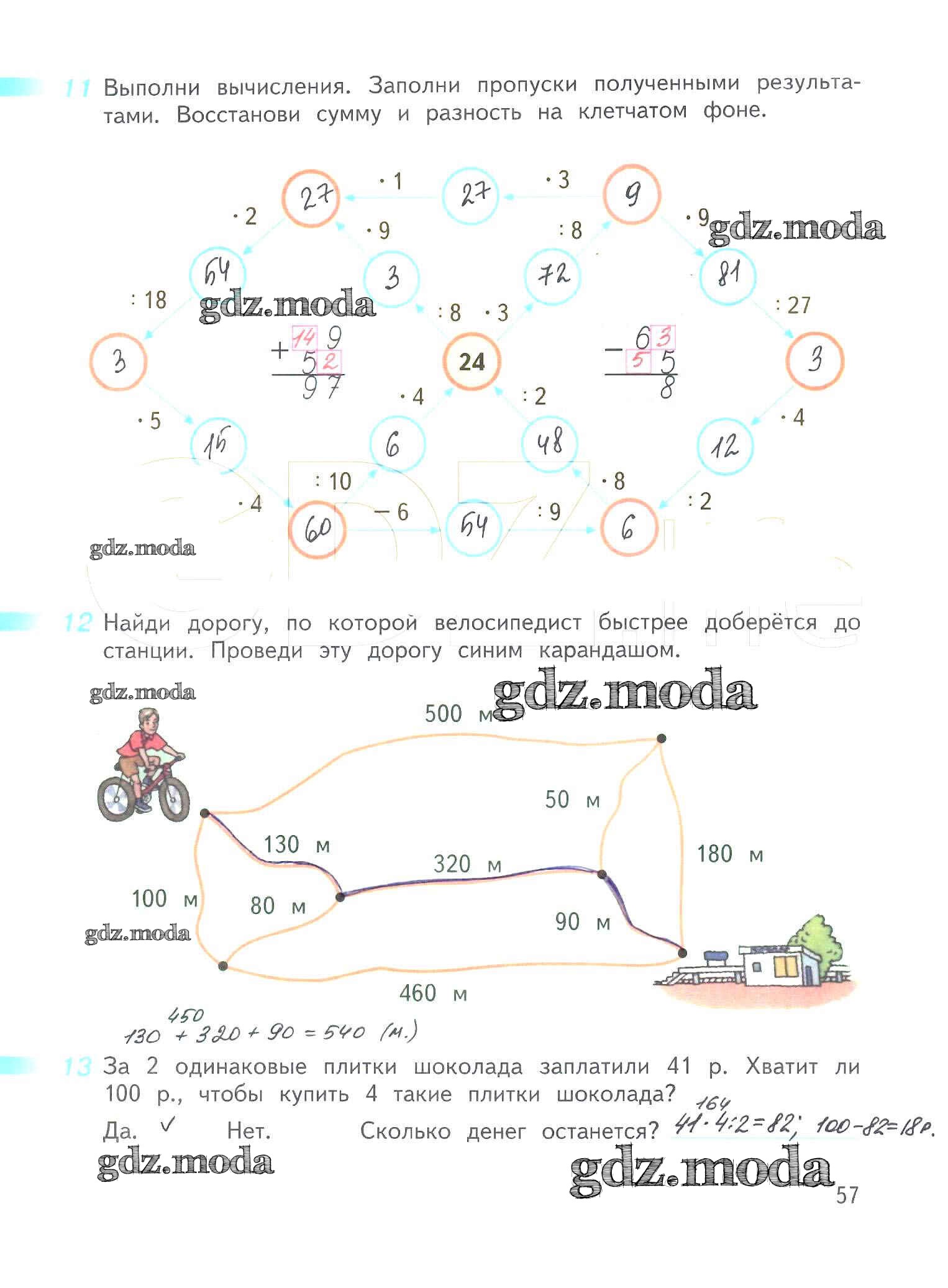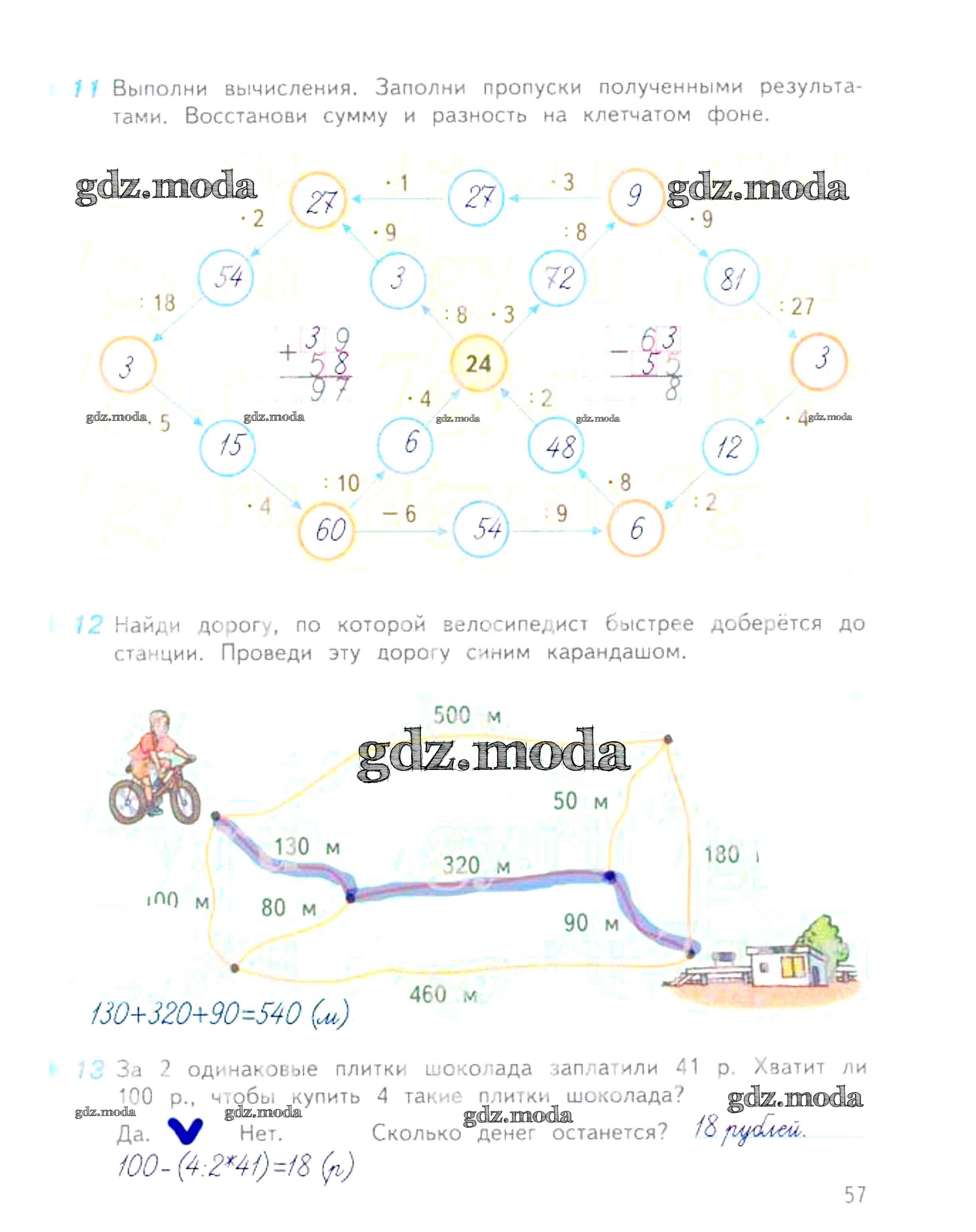 ОТВЕТ на задание № 57 Рабочая тетрадь по Математике 3 класс Дорофеев Перспектива