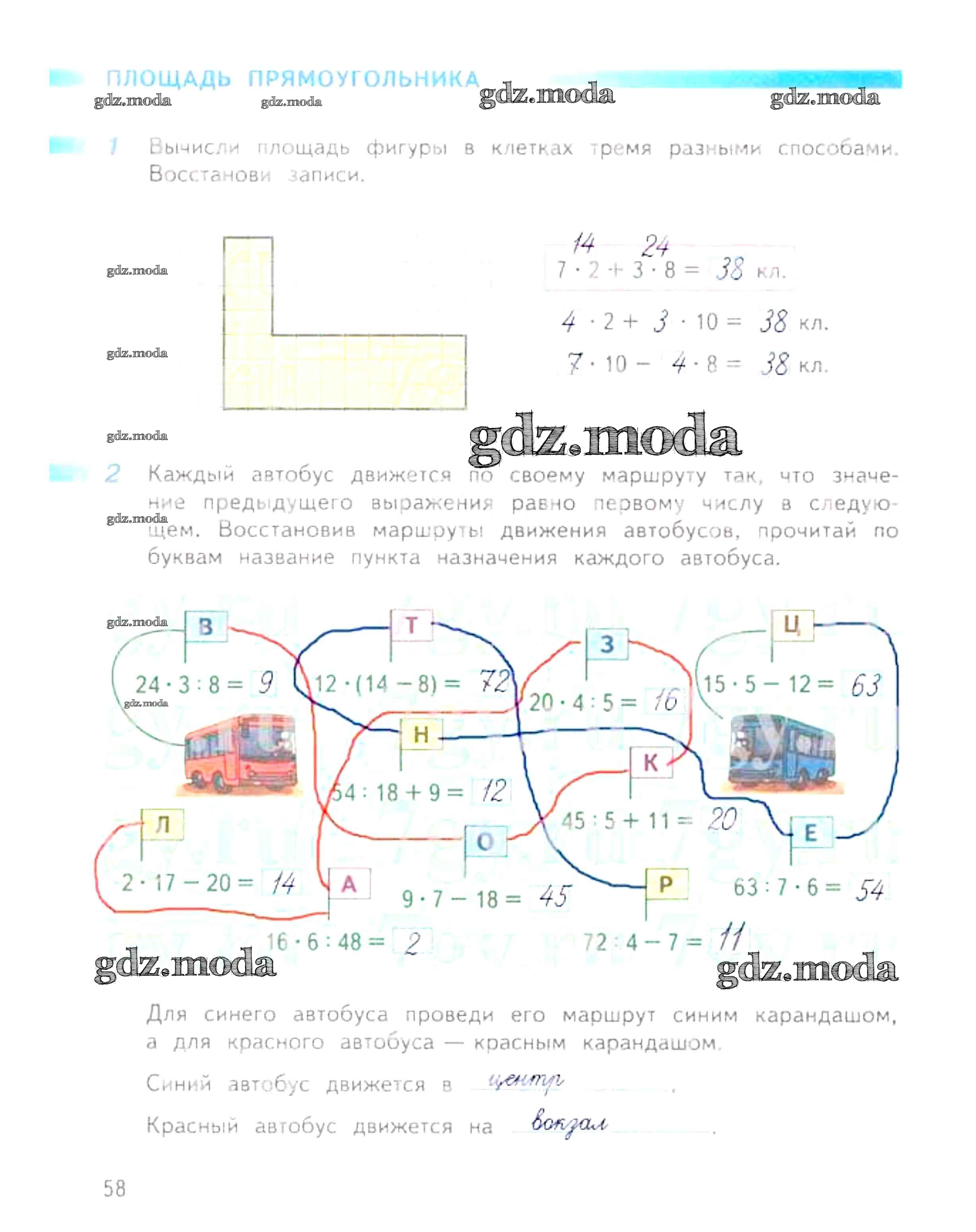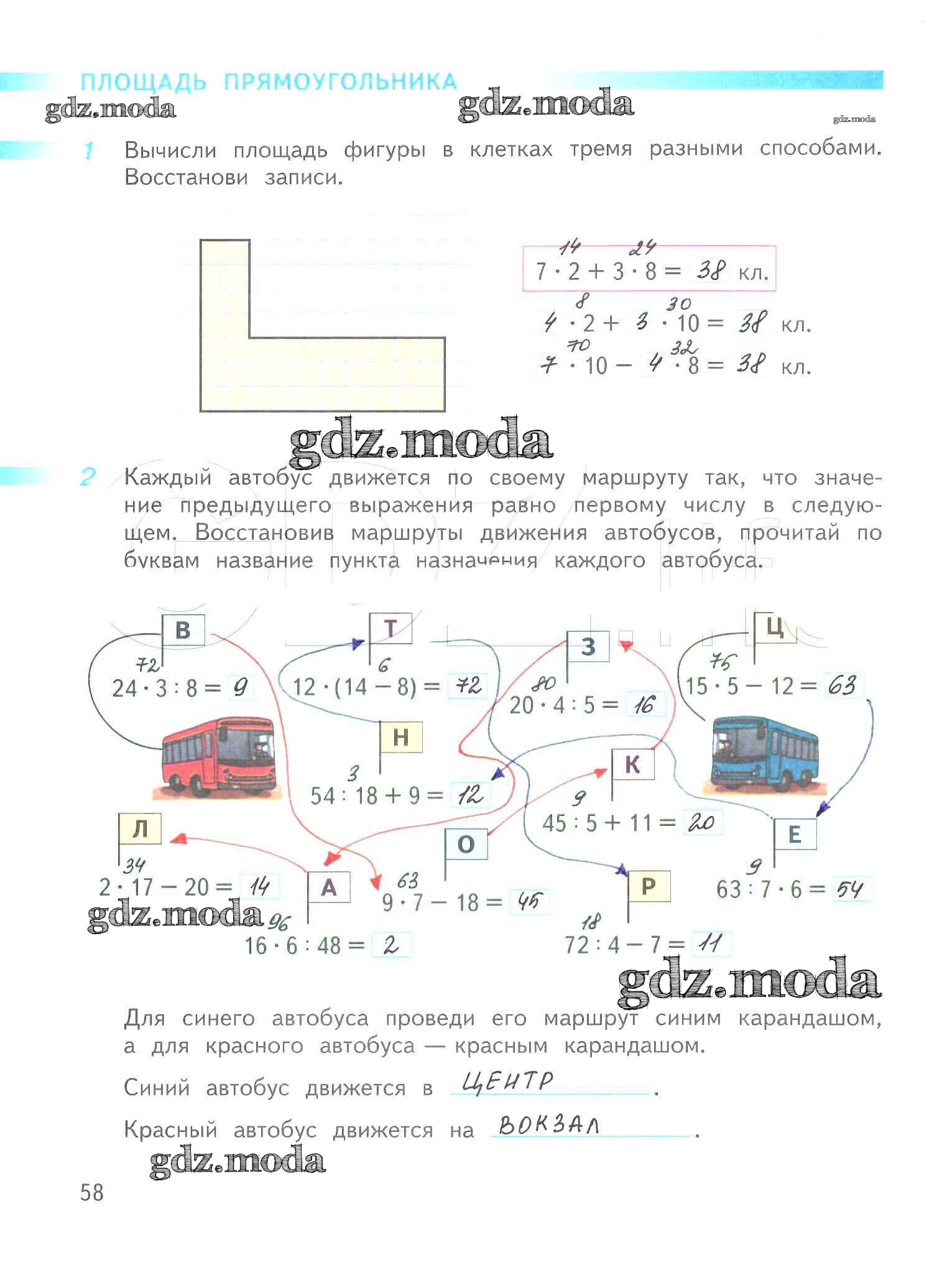 ОТВЕТ на задание № 58 Рабочая тетрадь по Математике 3 класс Дорофеев Перспектива