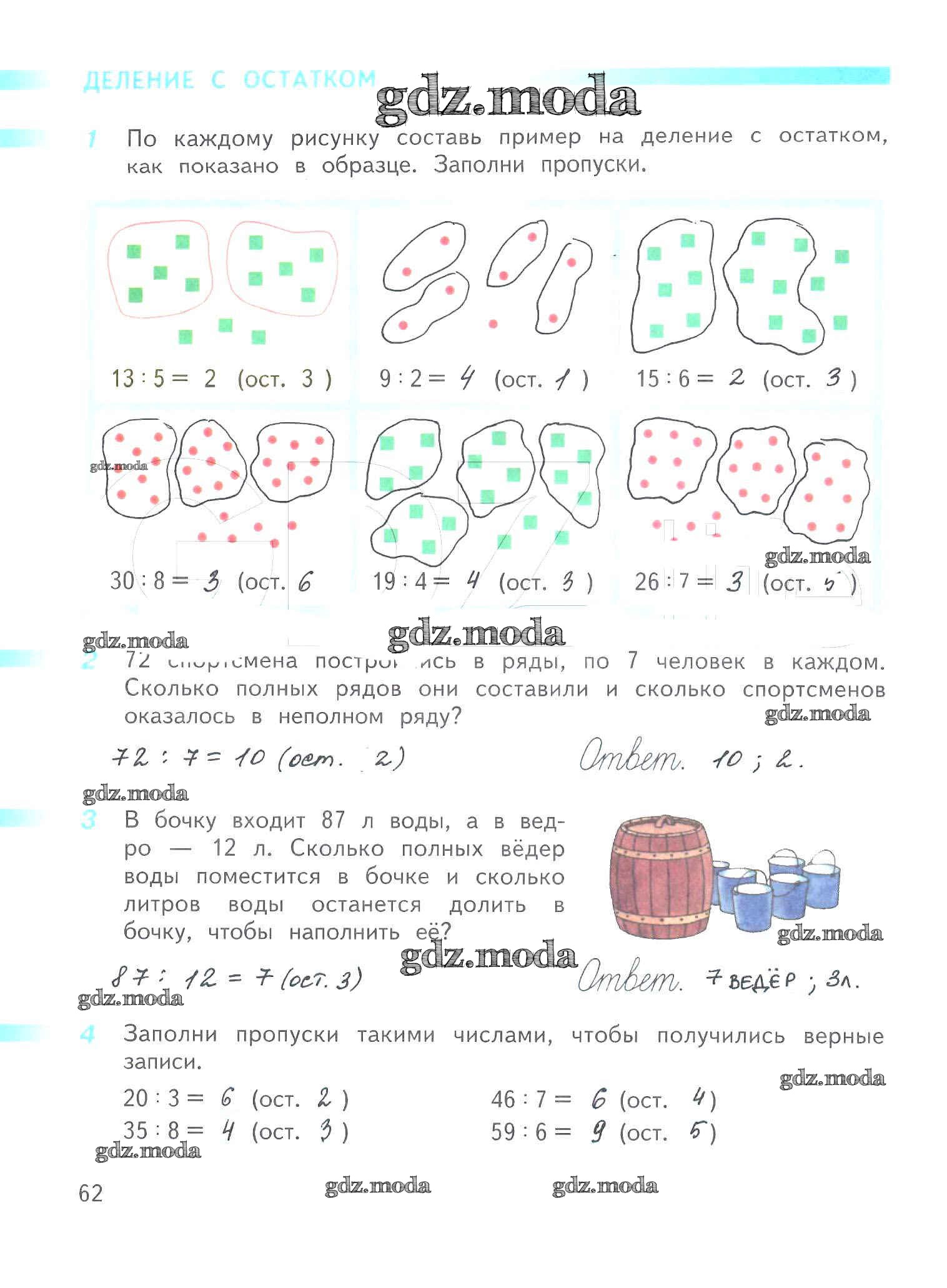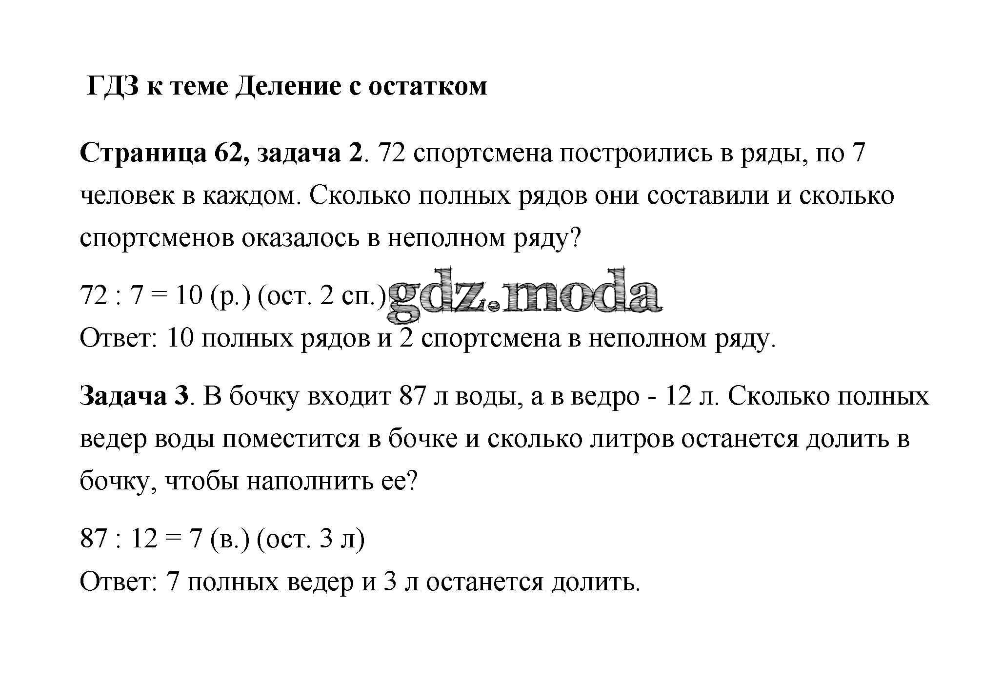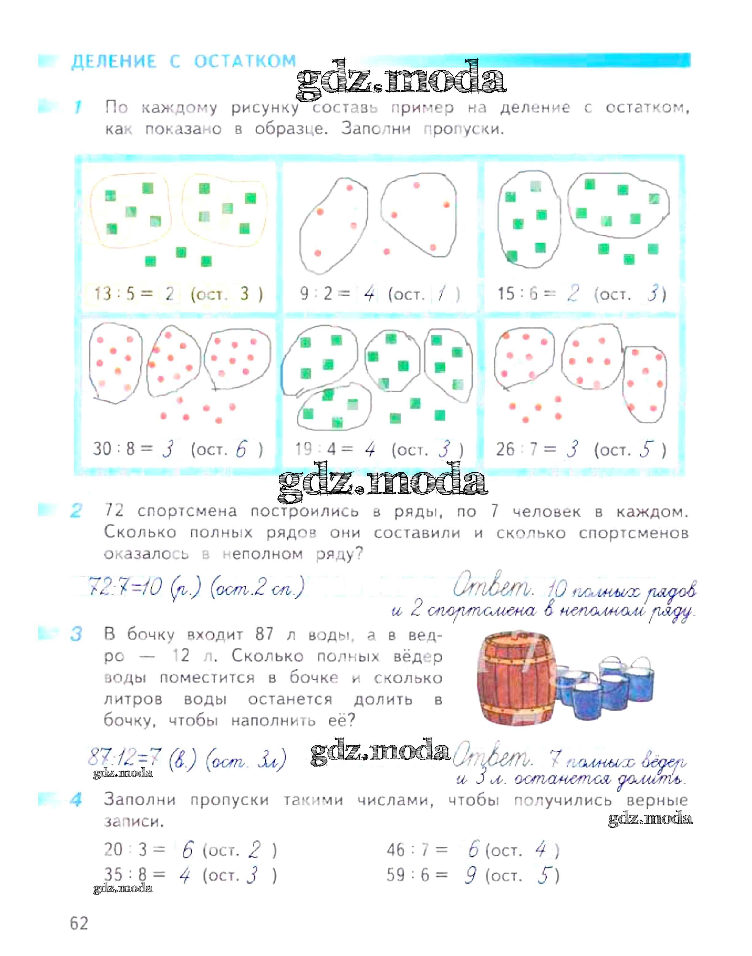 ОТВЕТ на задание № 62 Рабочая тетрадь по Математике 3 класс Дорофеев Перспектива