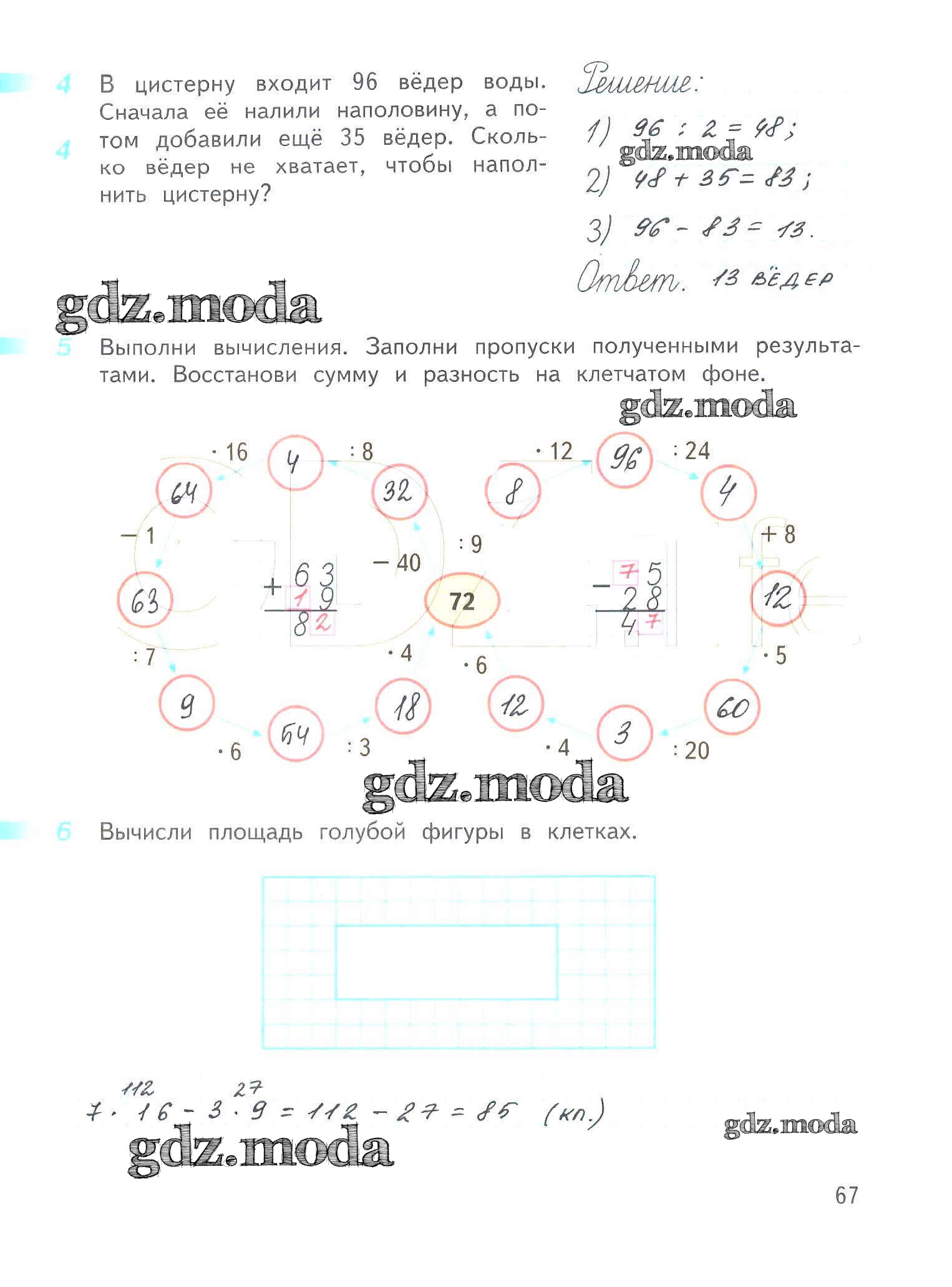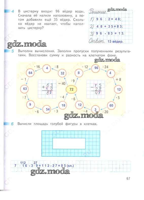 ОТВЕТ на задание № 67 Рабочая тетрадь по Математике 3 класс Дорофеев Перспектива