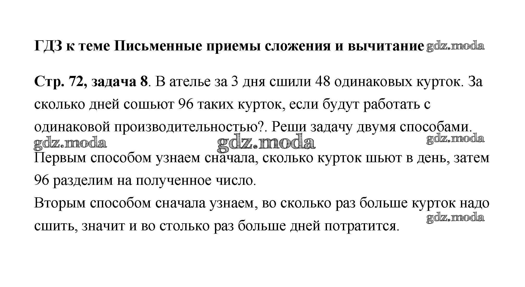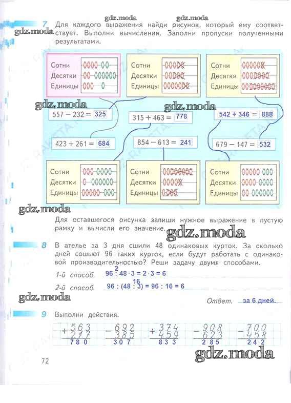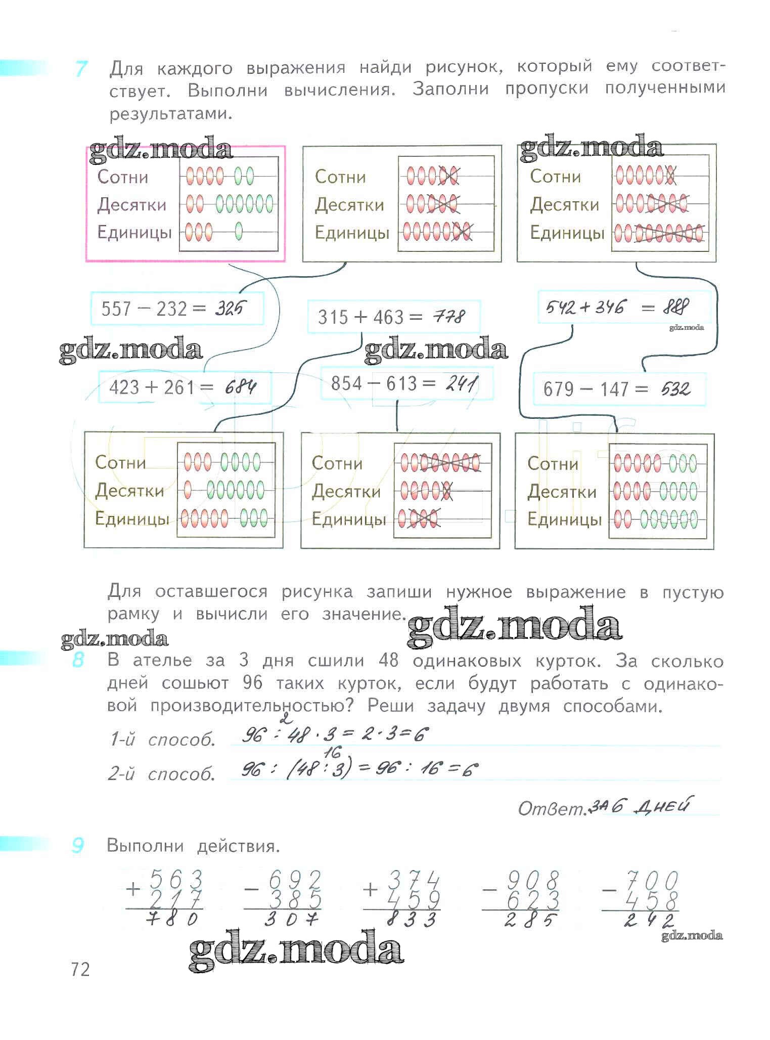ОТВЕТ на задание № 72 Рабочая тетрадь по Математике 3 класс Дорофеев Перспектива
