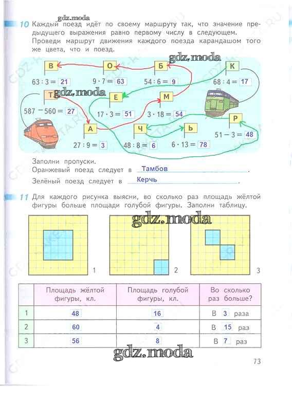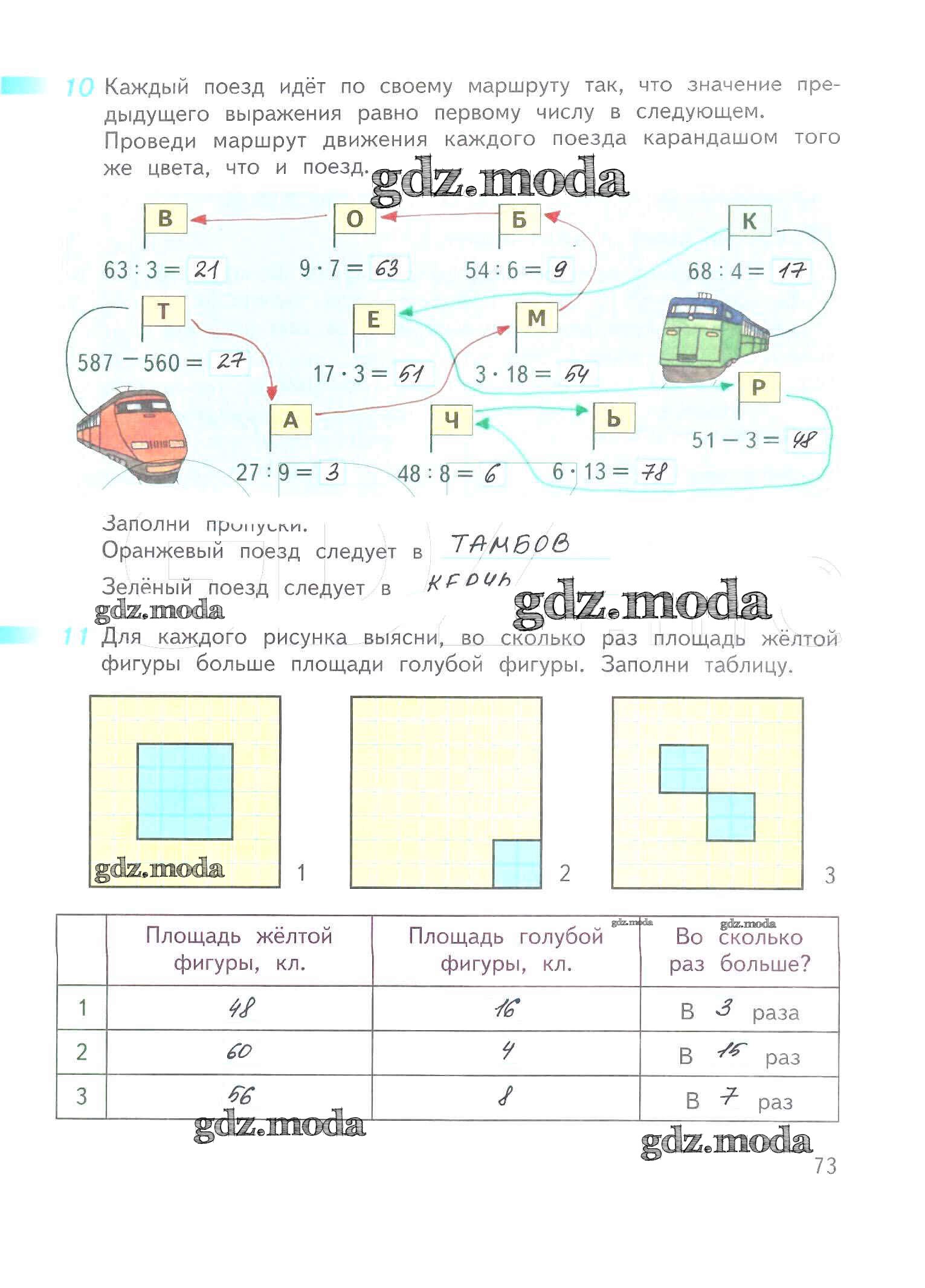 ОТВЕТ на задание № 73 Рабочая тетрадь по Математике 3 класс Дорофеев Перспектива
