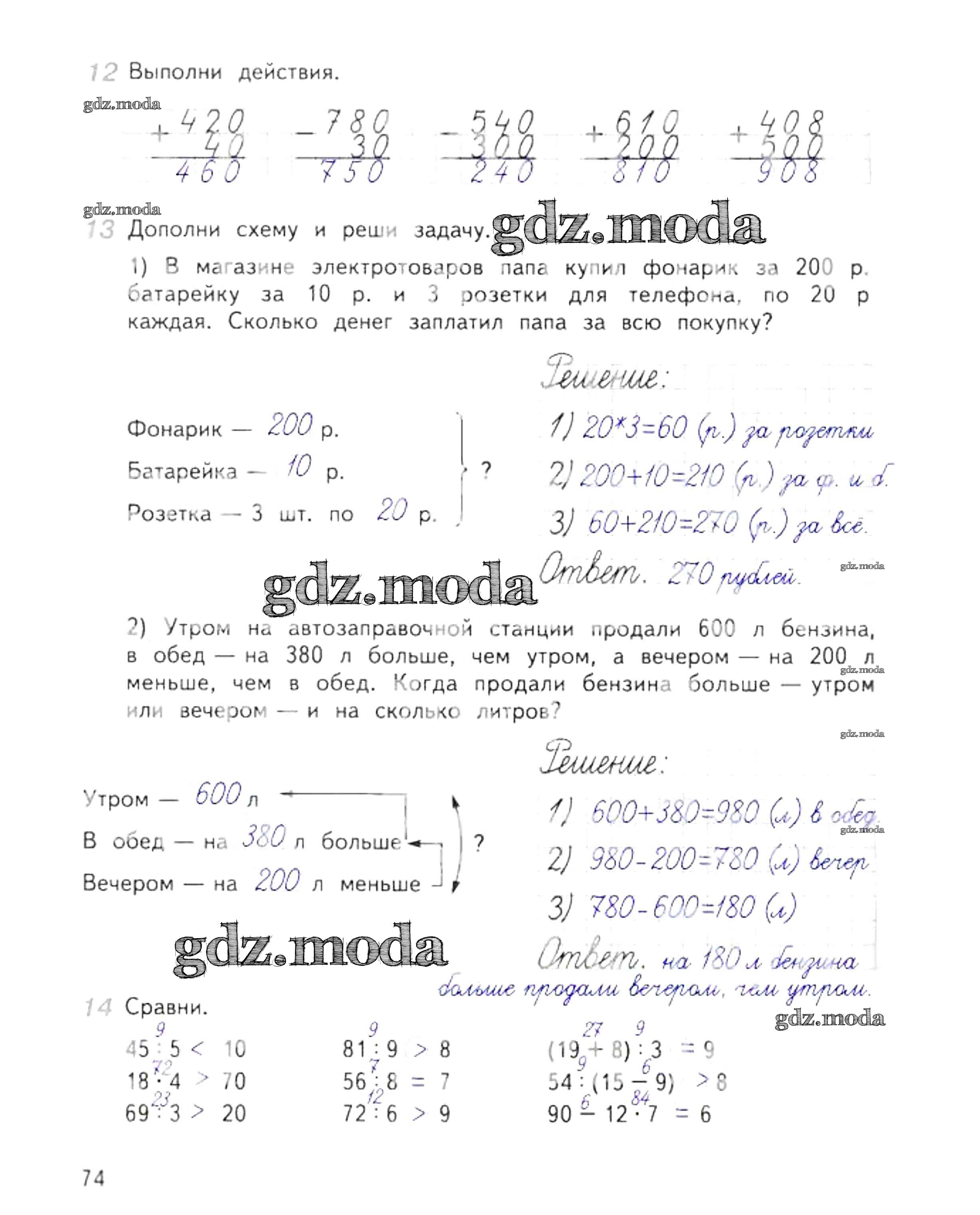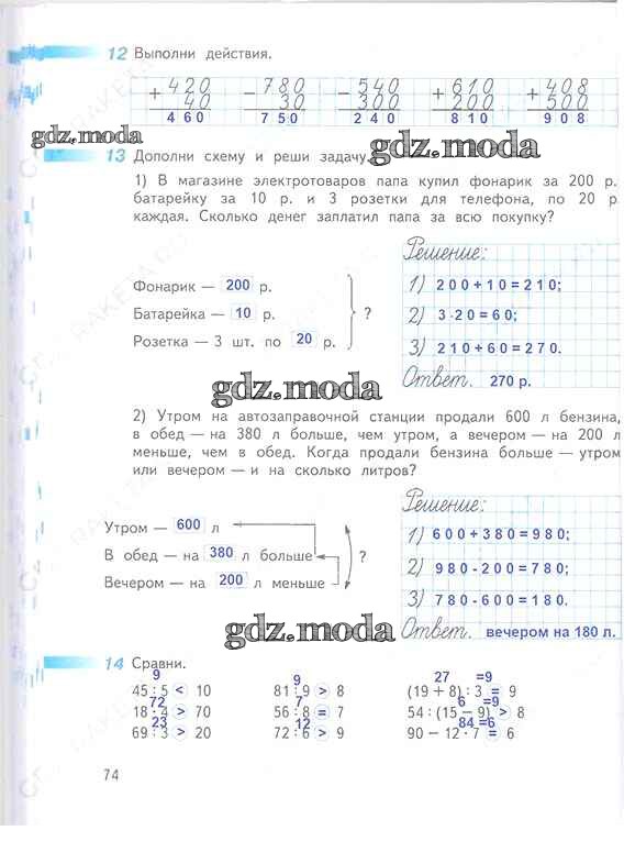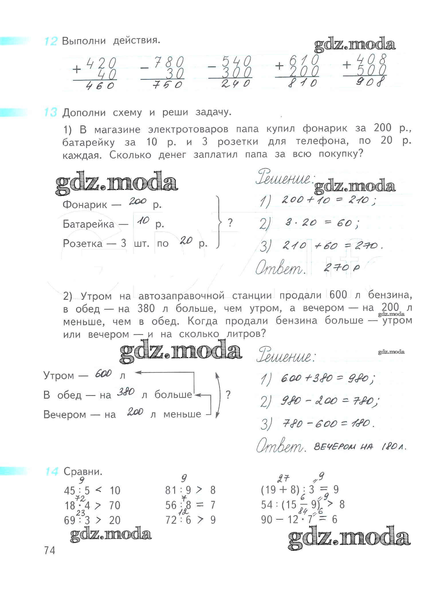 ОТВЕТ на задание № 74 Рабочая тетрадь по Математике 3 класс Дорофеев Перспектива