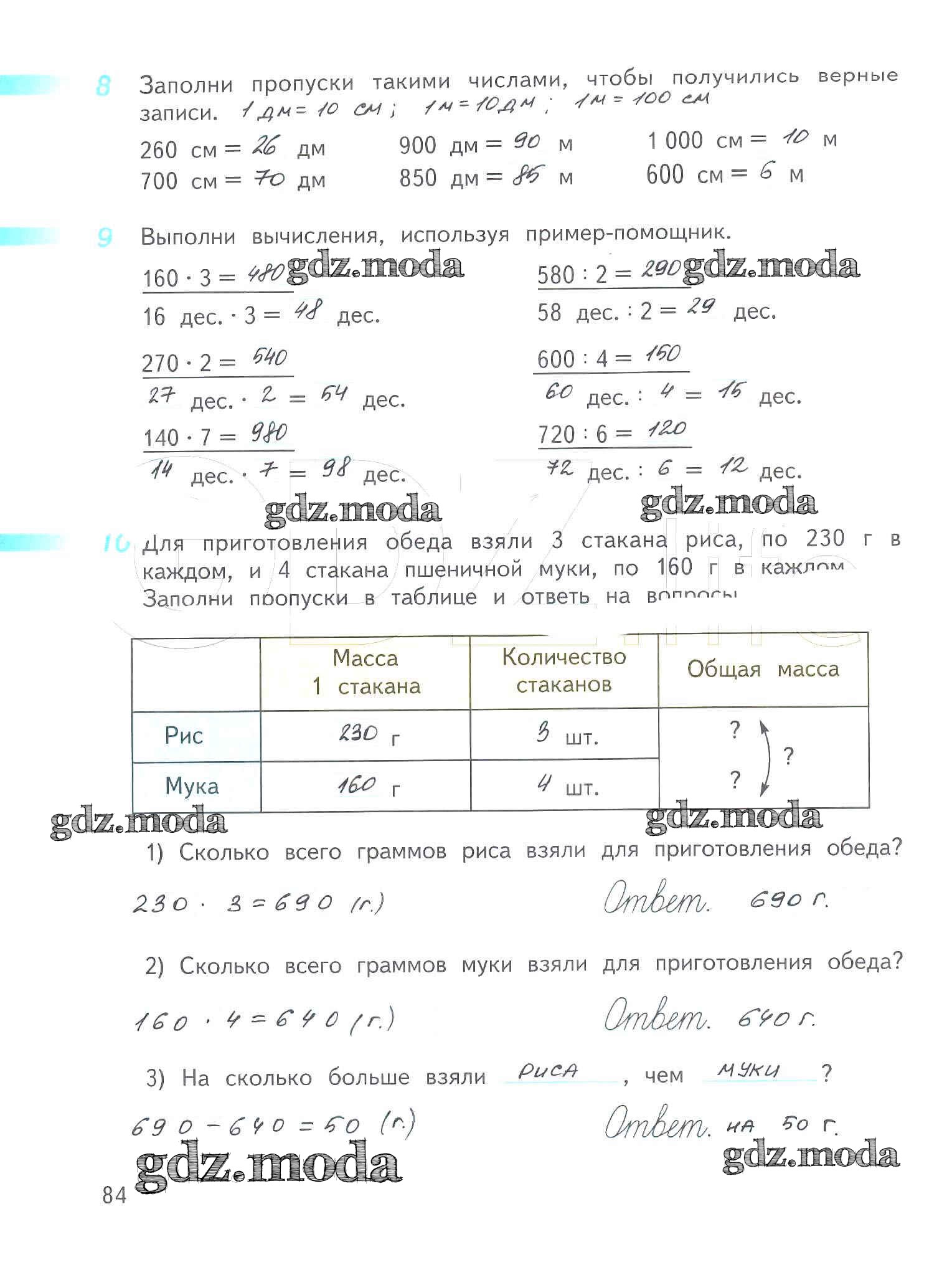 ОТВЕТ на задание № 84 Рабочая тетрадь по Математике 3 класс Дорофеев Перспектива