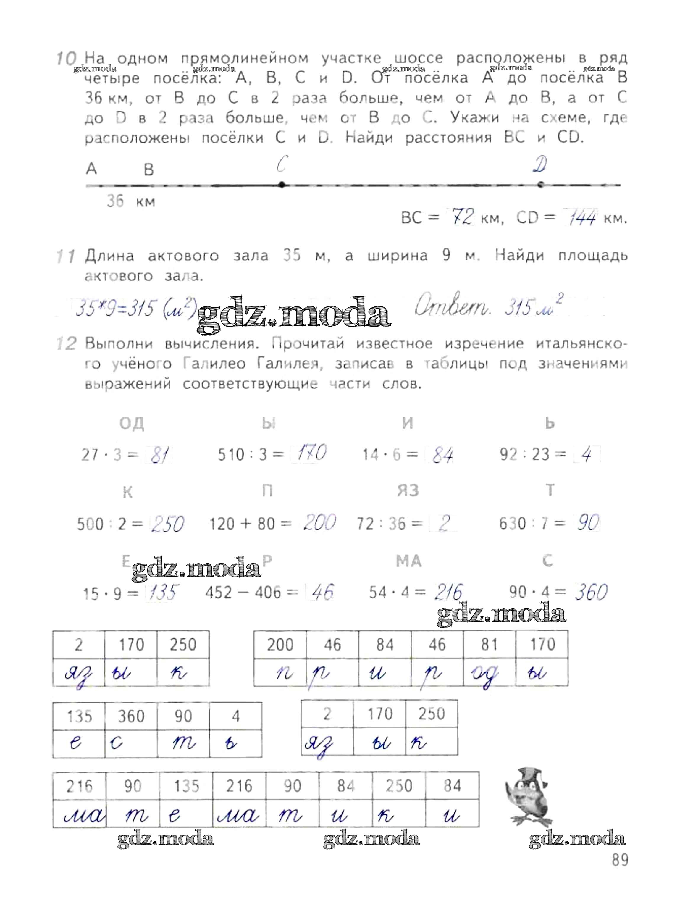ОТВЕТ на задание № 89 Рабочая тетрадь по Математике 3 класс Дорофеев Перспектива