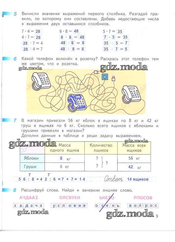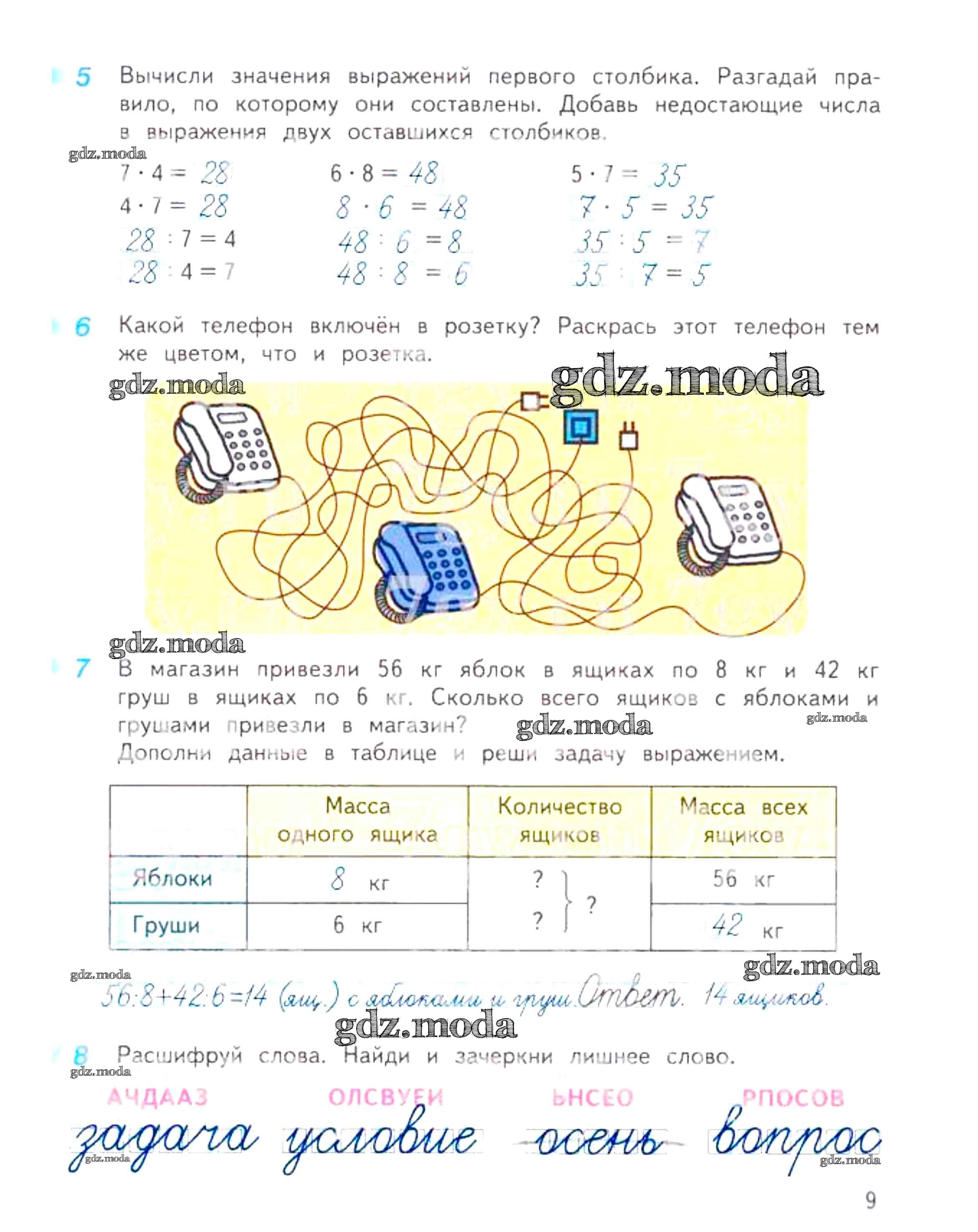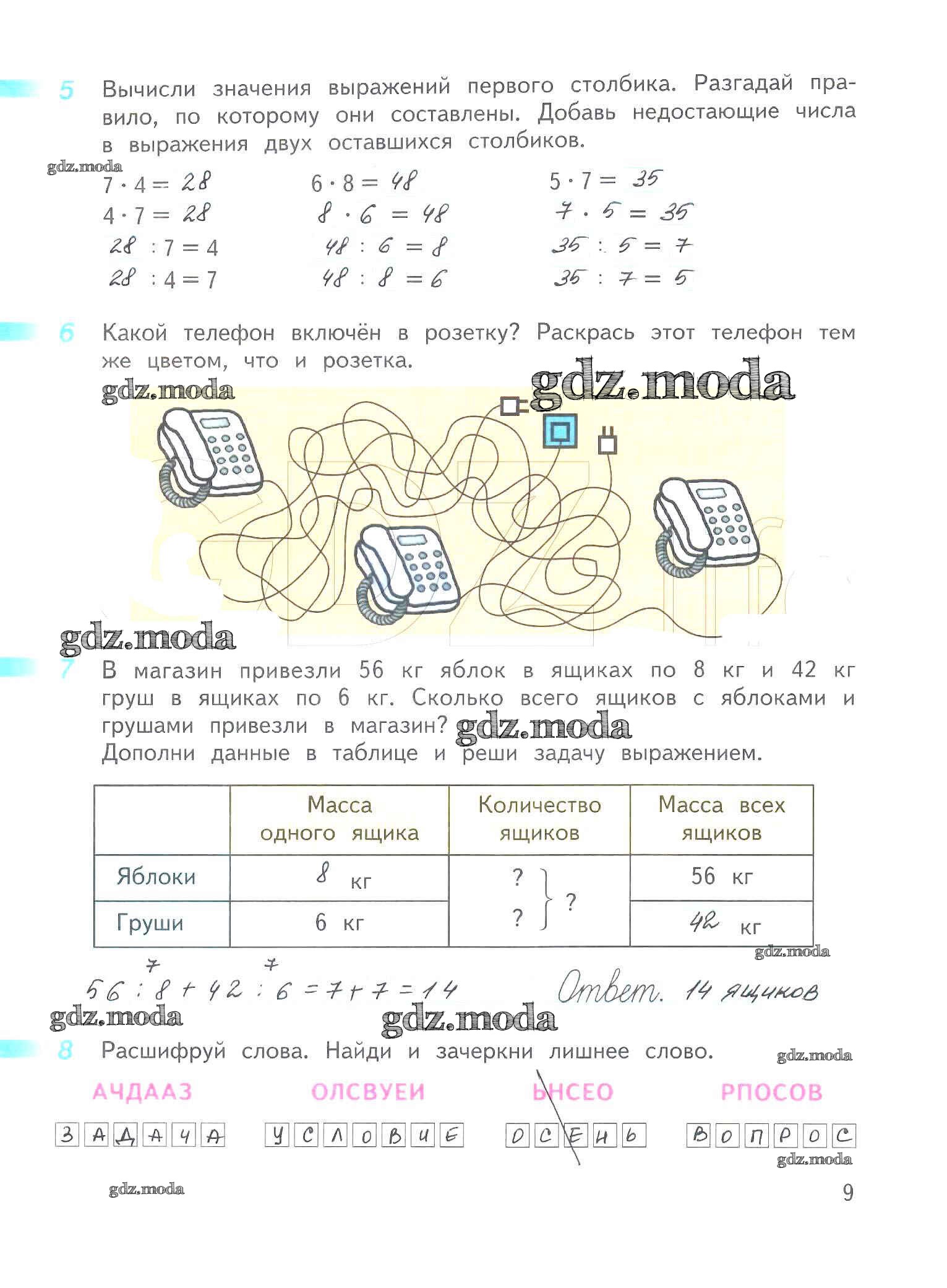 ГДЗ решение к заданию № 9 Математика 3 класс рабочая тетрадь Дорофеев Г.В. Просвещение 2017 Часть 1, Часть 2 ФГОС бесплатно на гдз.мода!