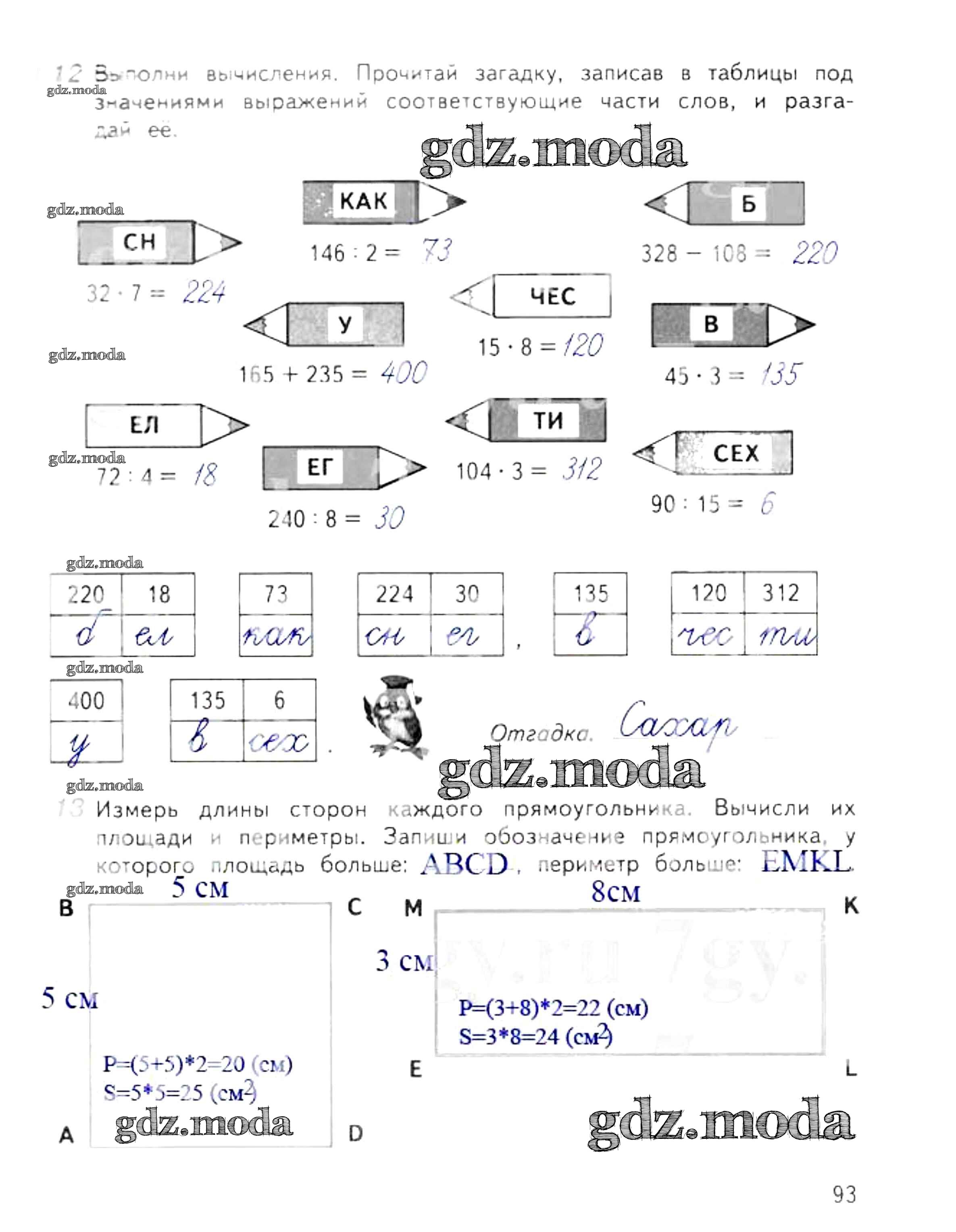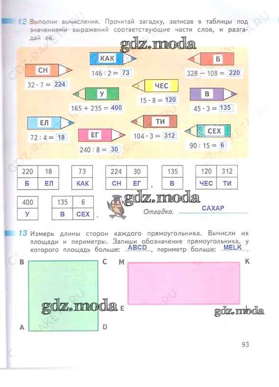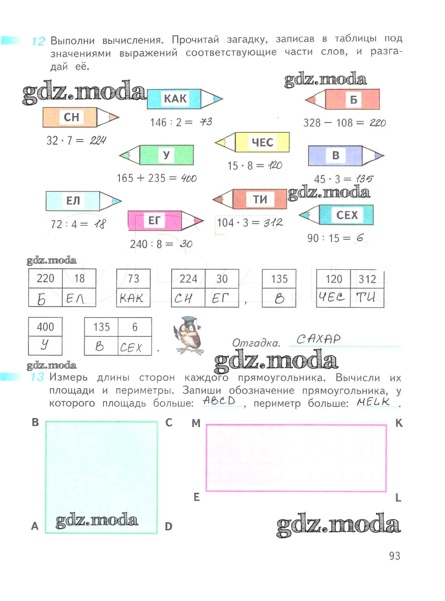 ОТВЕТ на задание № 93 Рабочая тетрадь по Математике 3 класс Дорофеев Перспектива