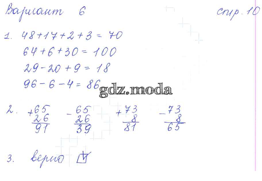 ГДЗ решение к заданию № 10 Математика 3 класс: контрольные работы Рудницкая В.Н. (к уч. Моро М.И.) Экзамен 2017 Часть 1, Часть 2 ФГОС бесплатно на гдз.мода!