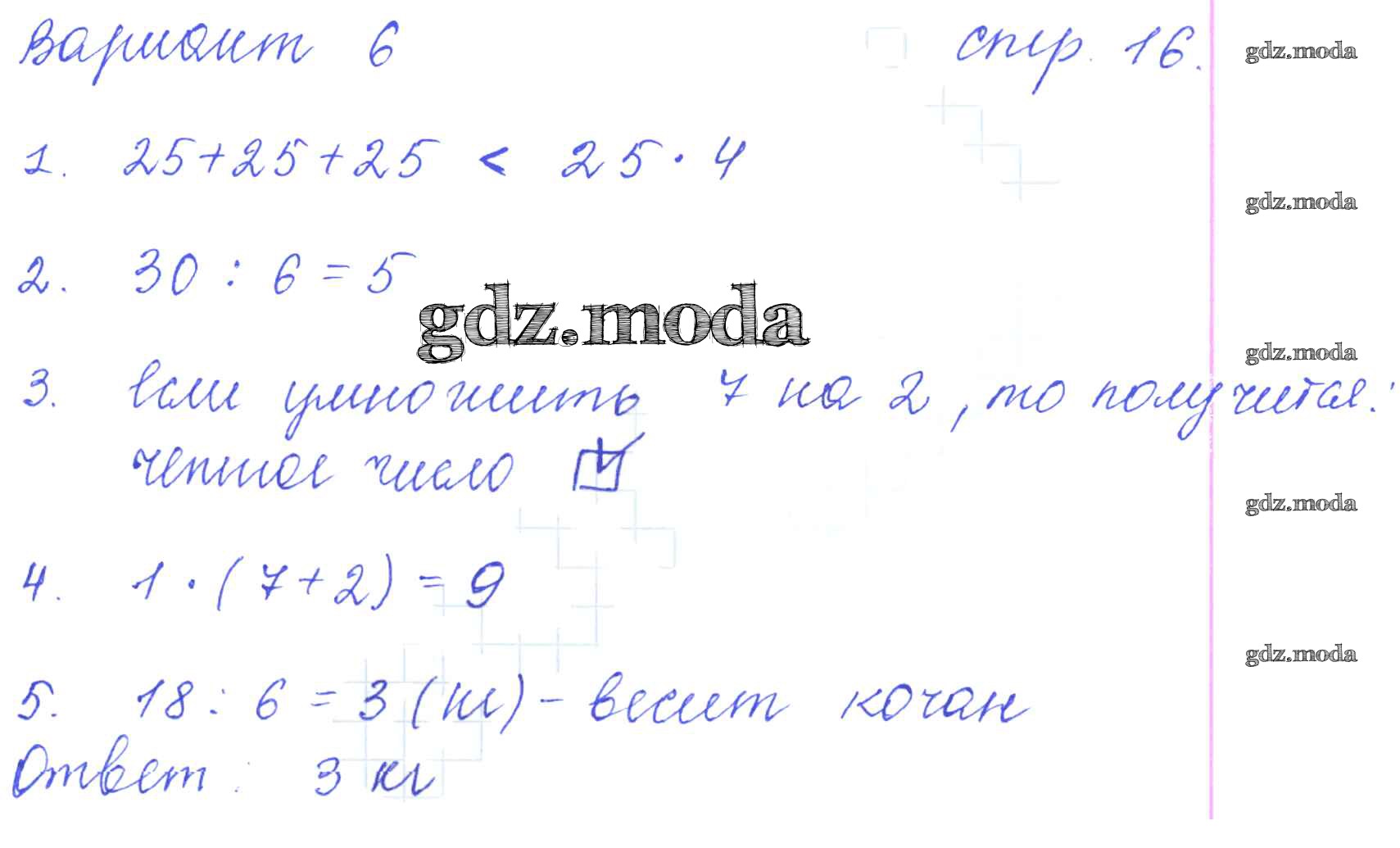 ГДЗ решение к заданию № 16 Математика 3 класс: контрольные работы Рудницкая В.Н. (к уч. Моро М.И.) Экзамен 2017 Часть 1, Часть 2 ФГОС бесплатно на гдз.мода!