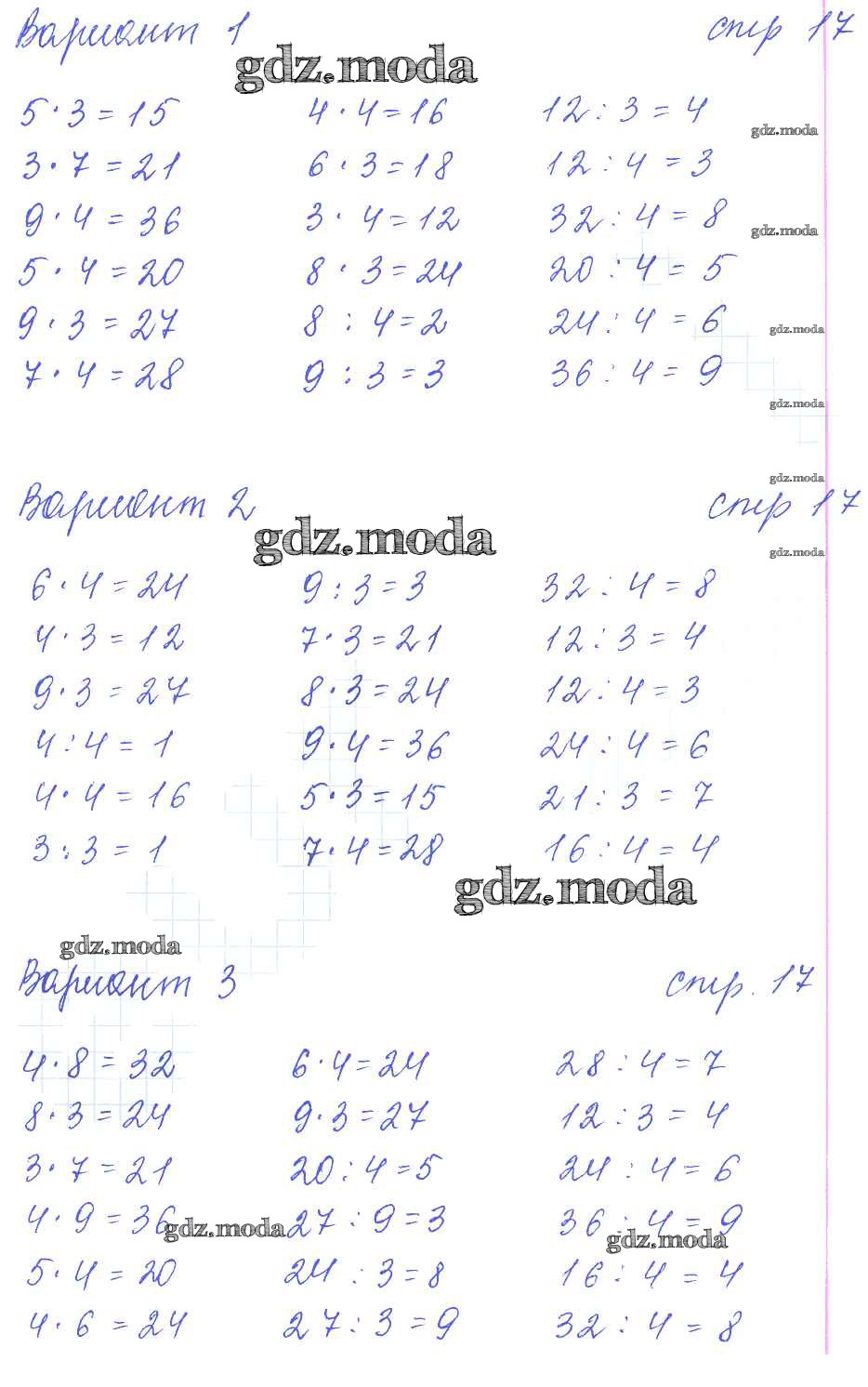 ГДЗ решение к заданию № 17 Математика 3 класс: контрольные работы Рудницкая В.Н. (к уч. Моро М.И.) Экзамен 2017 Часть 1, Часть 2 ФГОС бесплатно на гдз.мода!