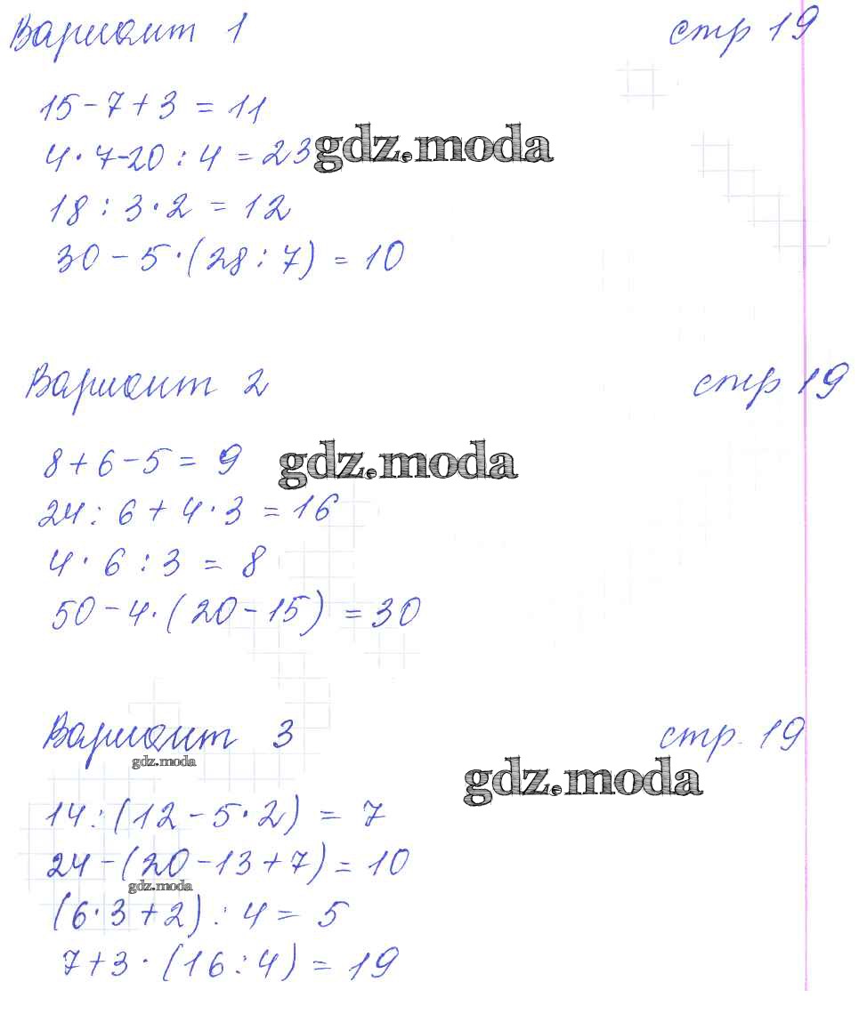 ГДЗ решение к заданию № 19 Математика 3 класс: контрольные работы Рудницкая В.Н. (к уч. Моро М.И.) Экзамен 2017 Часть 1, Часть 2 ФГОС бесплатно на гдз.мода!