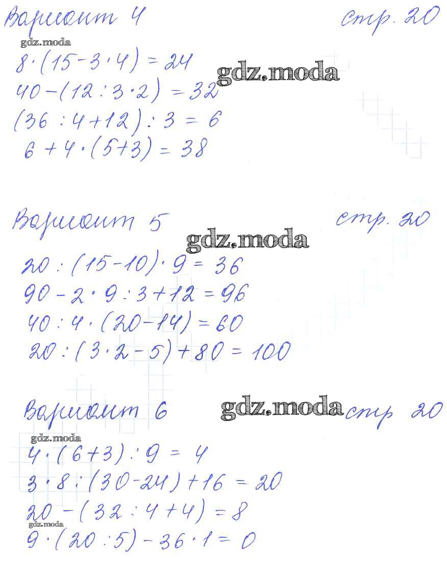 ГДЗ решение к заданию № 20 Математика 3 класс: контрольные работы Рудницкая В.Н. (к уч. Моро М.И.) Экзамен 2017 Часть 1, Часть 2 ФГОС бесплатно на гдз.мода!