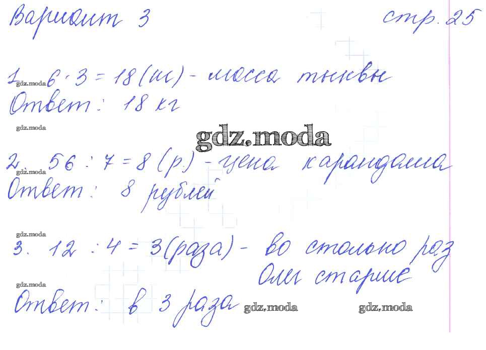 ГДЗ решение к заданию № 25 Математика 3 класс: контрольные работы Рудницкая В.Н. (к уч. Моро М.И.) Экзамен 2017 Часть 1, Часть 2 ФГОС бесплатно на гдз.мода!