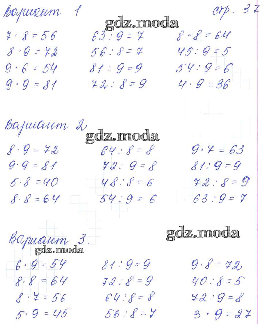 ГДЗ решение к заданию № 37 Математика 3 класс: контрольные работы Рудницкая В.Н. (к уч. Моро М.И.) Экзамен 2017 Часть 1, Часть 2 ФГОС бесплатно на гдз.мода!