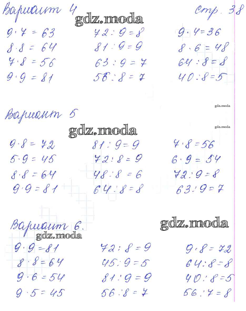 ГДЗ решение к заданию № 38 Математика 3 класс: контрольные работы Рудницкая В.Н. (к уч. Моро М.И.) Экзамен 2017 Часть 1, Часть 2 ФГОС бесплатно на гдз.мода!