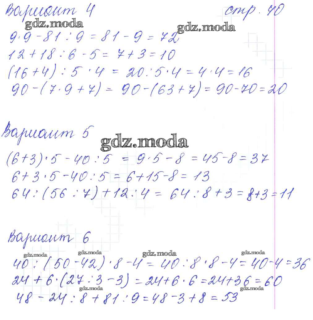 ГДЗ решение к заданию № 40 Математика 3 класс: контрольные работы Рудницкая В.Н. (к уч. Моро М.И.) Экзамен 2017 Часть 1, Часть 2 ФГОС бесплатно на гдз.мода!