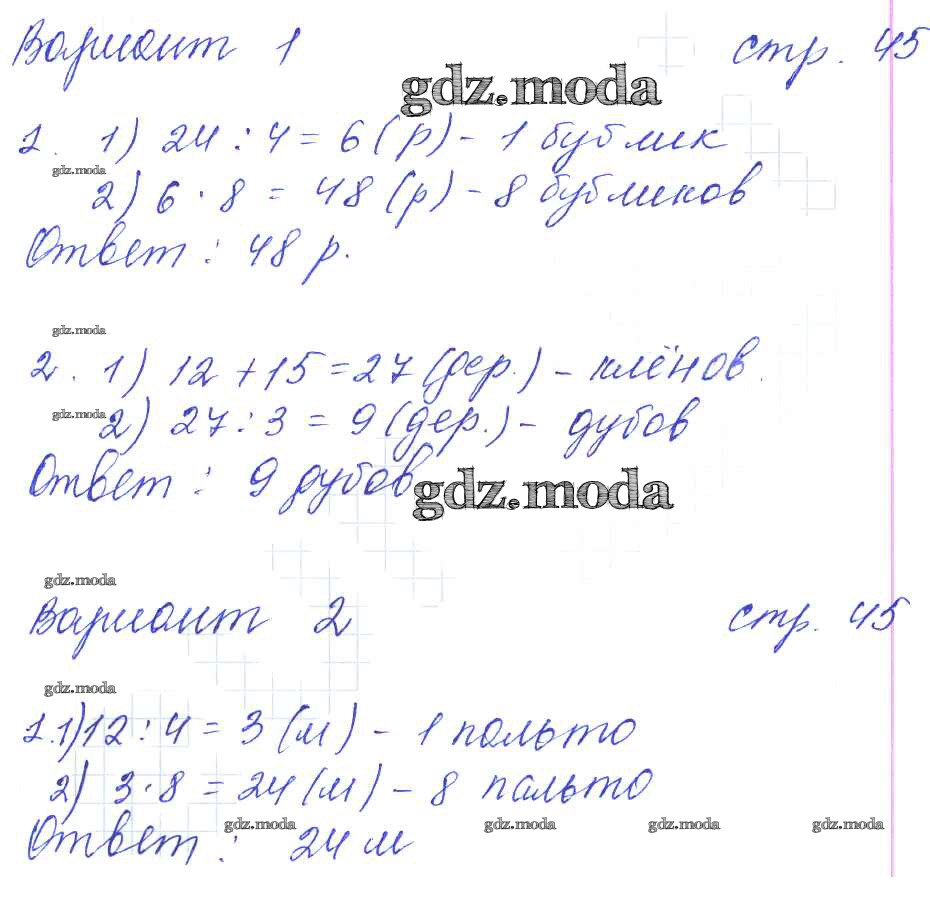 ГДЗ решение к заданию № 45 Математика 3 класс: контрольные работы Рудницкая В.Н. (к уч. Моро М.И.) Экзамен 2017 Часть 1, Часть 2 ФГОС бесплатно на гдз.мода!