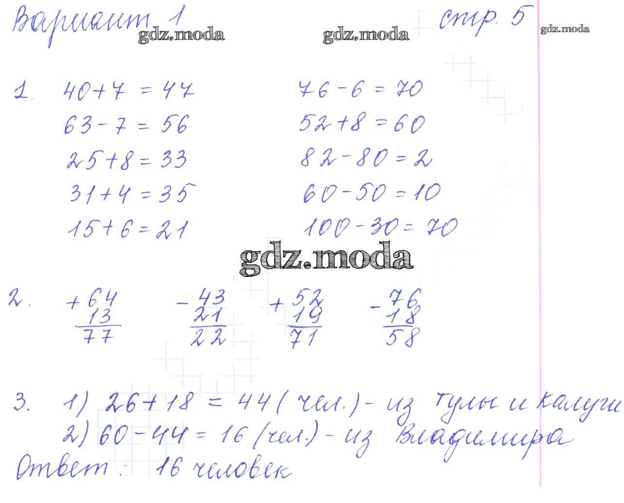 ГДЗ решение к заданию № 5 Математика 3 класс: контрольные работы Рудницкая В.Н. (к уч. Моро М.И.) Экзамен 2017 Часть 1, Часть 2 ФГОС бесплатно на гдз.мода!