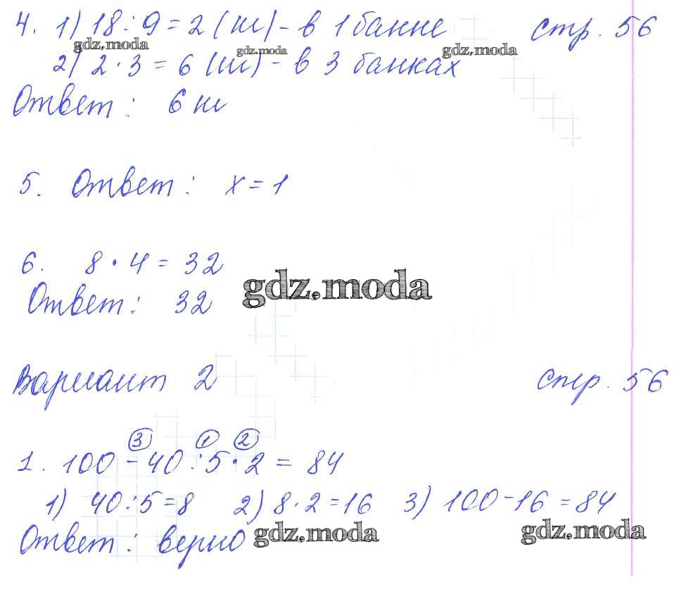 ГДЗ решение к заданию № 56 Математика 3 класс: контрольные работы Рудницкая В.Н. (к уч. Моро М.И.) Экзамен 2017 Часть 1, Часть 2 ФГОС бесплатно на гдз.мода!