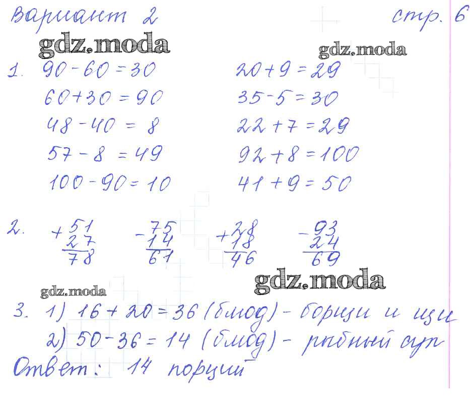 ГДЗ решение к заданию № 6 Математика 3 класс: контрольные работы Рудницкая В.Н. (к уч. Моро М.И.) Экзамен 2017 Часть 1, Часть 2 ФГОС бесплатно на гдз.мода!